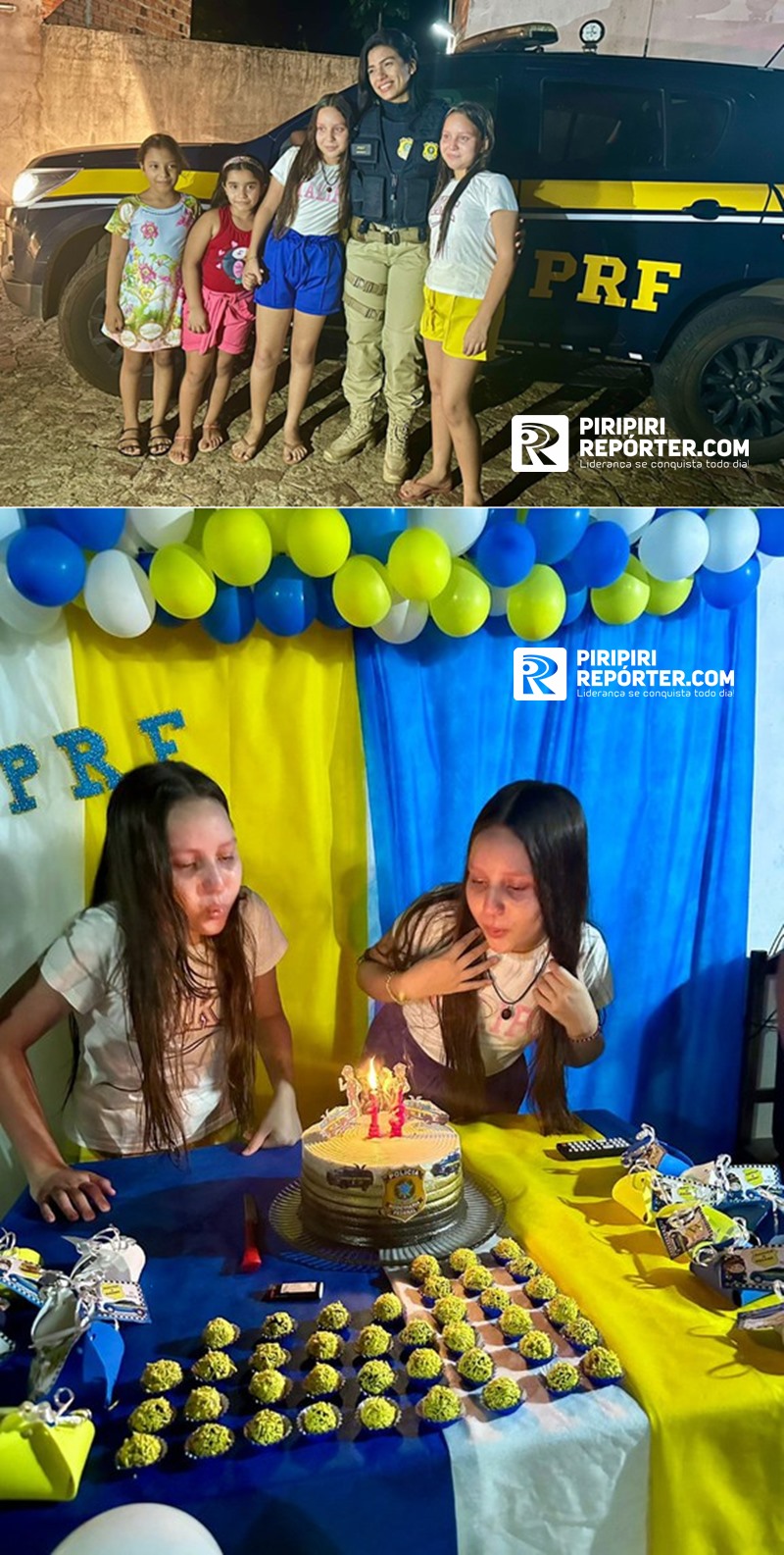 Na noite da última sexta-feira (20), uma equipe de Policiais Rodoviários Federais atenderam a uma ocorrência um pouco diferente. Atendendo a um convite super especial, os agentes celebraram, em Piripiri (PI), o aniversário de 13 anos de duas jovens irmãs, Raissa e Raiane.