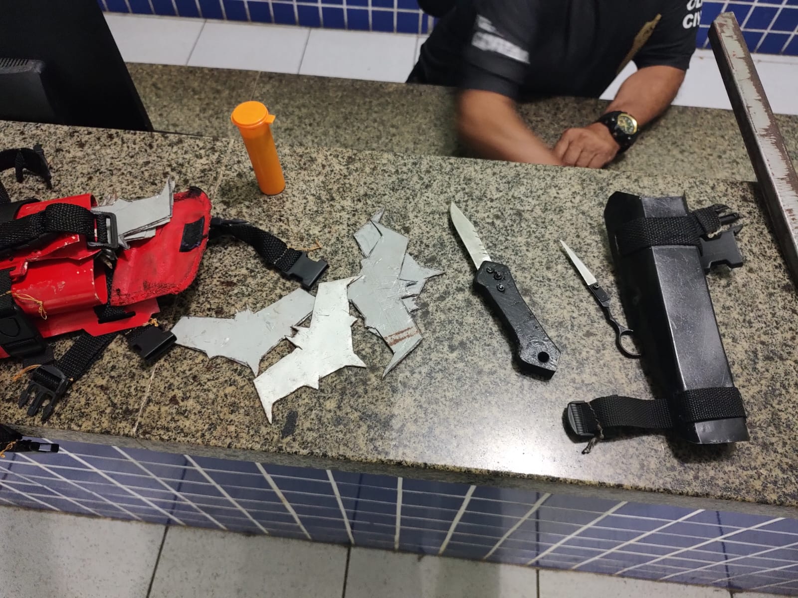 Segundo o tenente-coronel Danilo Palhano, comandante do 27º Batalhão da Polícia Militar de Parnaíba, o homem foi identificado como Rodrigo Rodrigues e carregava esses adereços em forma de morcego numa bolsa vermelha.