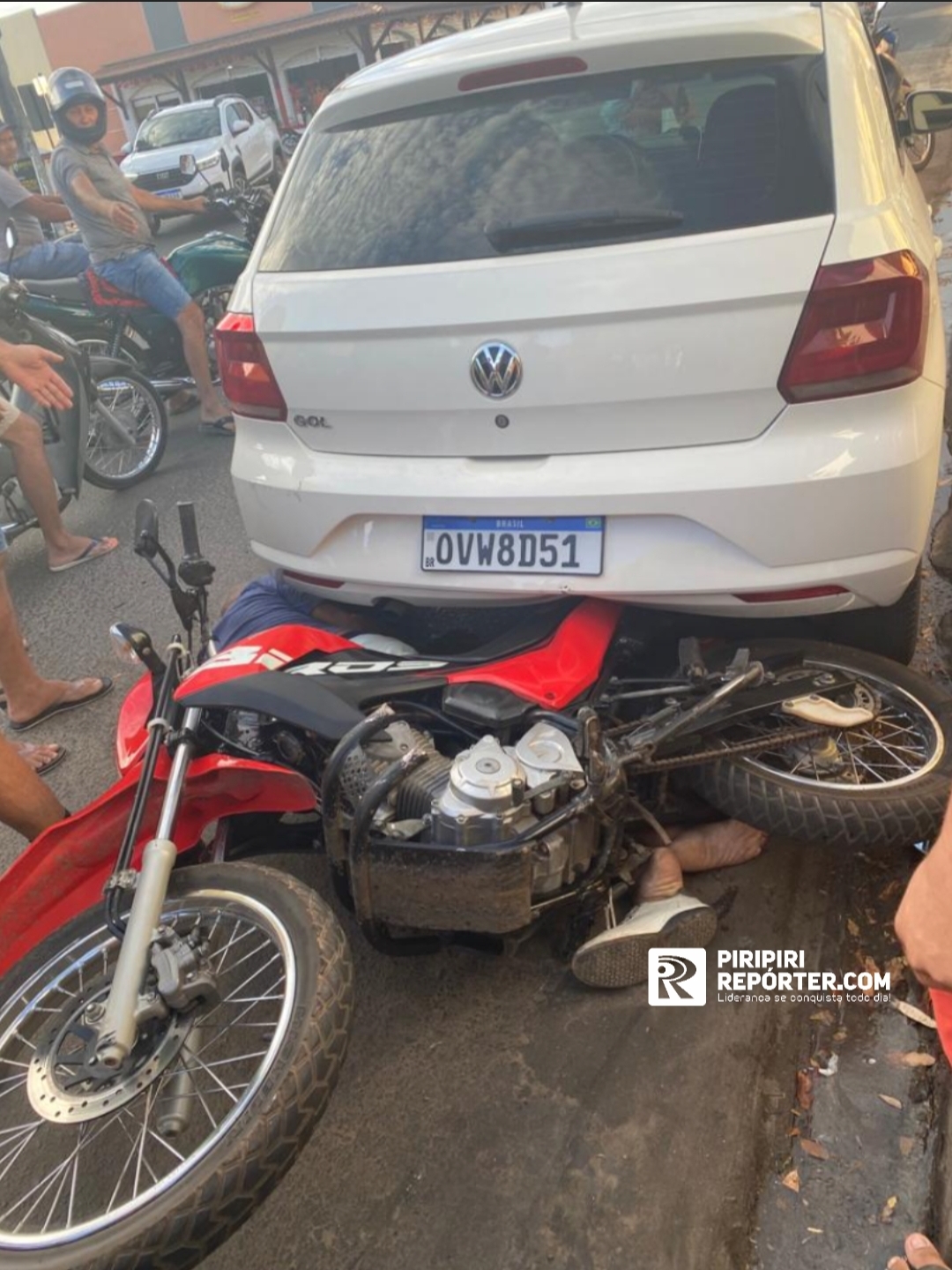 Um acidente registrado na tarde deste sábado, dia 9 de setembro na Avenida Aderson Ferreira, em Piripiri. A cena da imagem acima chamou atenção. O motoqueiro foi parar embaixo de um veículo.