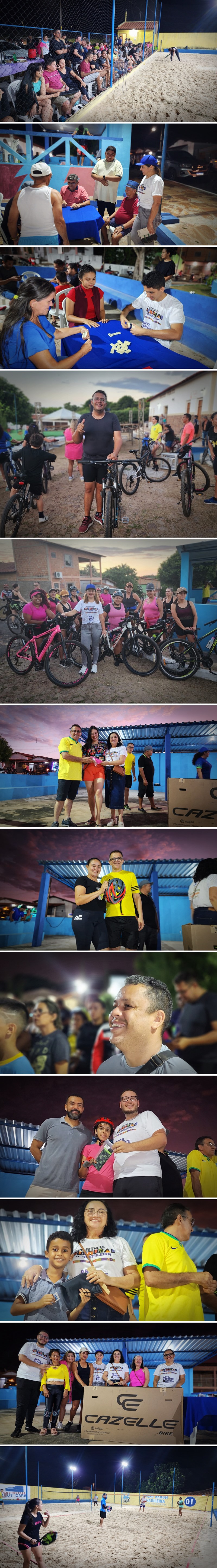 A abertura da semana cultural foi marcada pelo animado passeio ciclístico, que reuniu pessoas de todas as idades. Mas as atividades não pararam por aí. Tiveram ainda campeonatos emocionantes de dominó, baralho, sinuca, dama e beach Tênis.