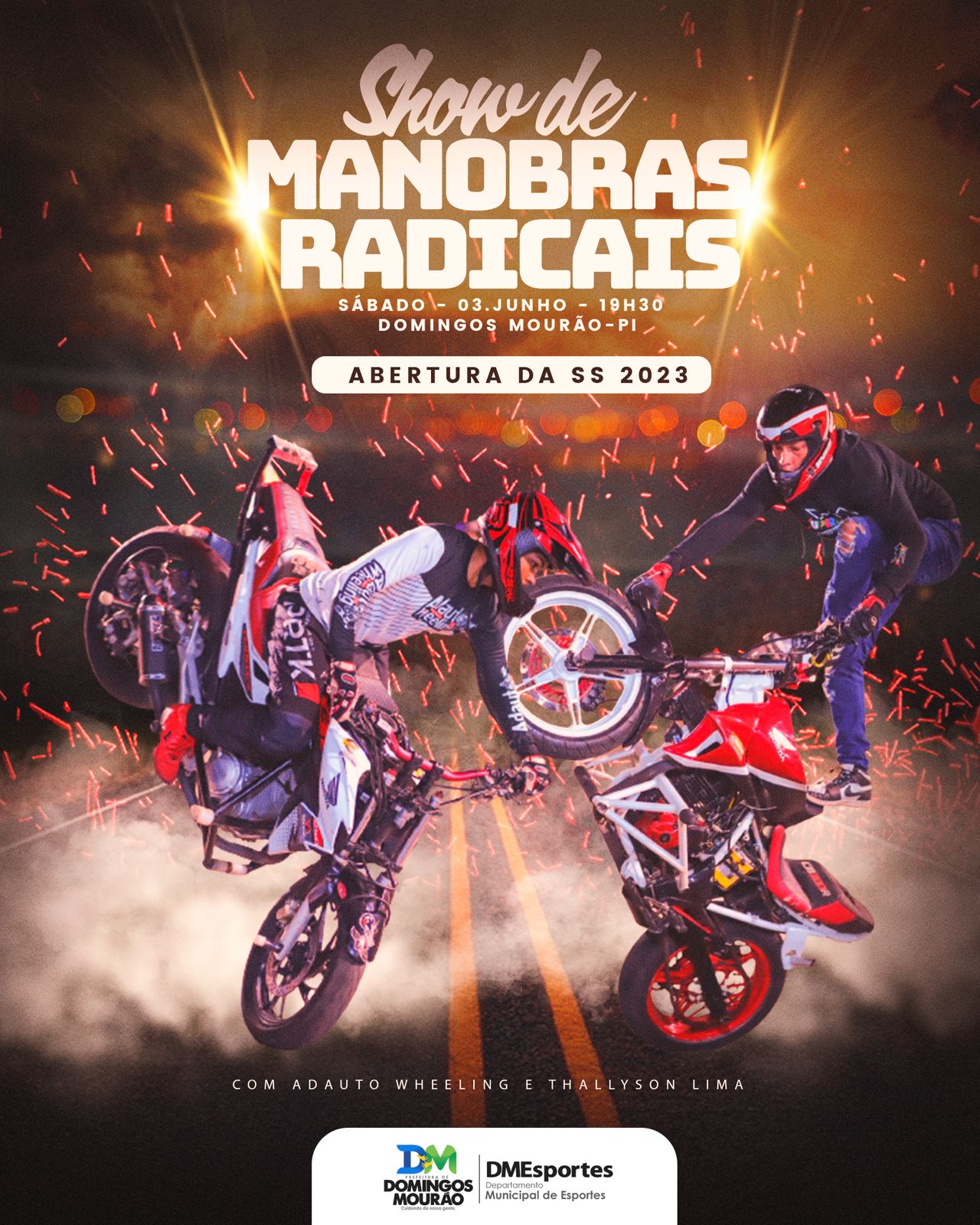 Adauto Wheeling estará mais uma vez em Domingos Mourão, juntamente com Tallyson Lima para fazerem um super show de manobras radicais na noite do dia 4 de junho, sábado, a partir das 20hrs, na antiga quadra do Maria Isaías.