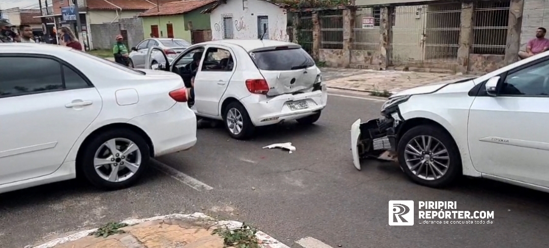 Foi uma colisão envolvendo três veículos, sendo dois Corollas e um Gol. Felizmente, ninguém ferido.