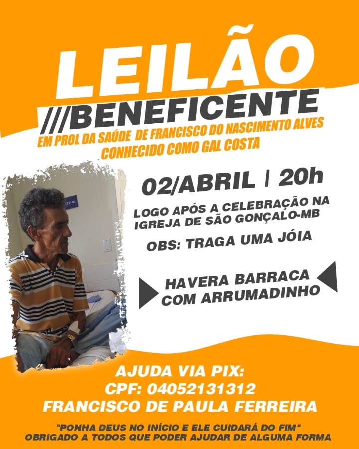 No município de Milton Brandão, o senhor Francisco do Nascimento Alves, conhecido como Gal Costa, foi diagnosticado com um tumor no pâncreas.