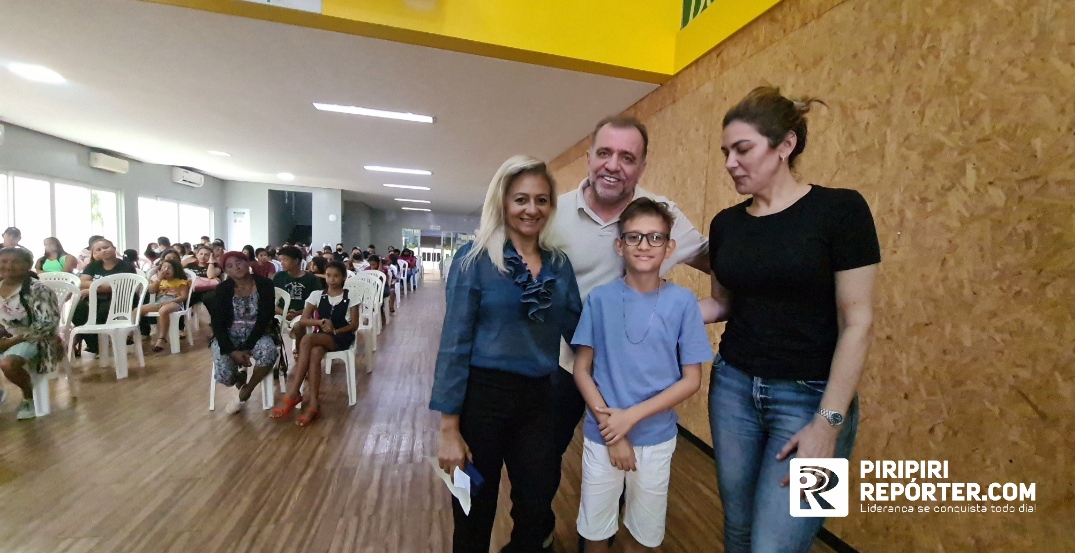 O diretor executivo da instituição, o empresário Leonardo Bezerra, junto com sua esposa, a advogada Mary Melo, reuniram os pais e as crianças na fundação para a realização da entrega dos óculos de grau.