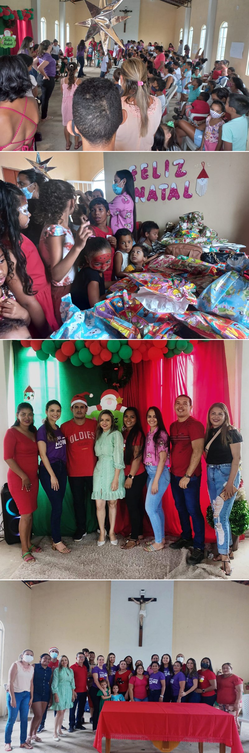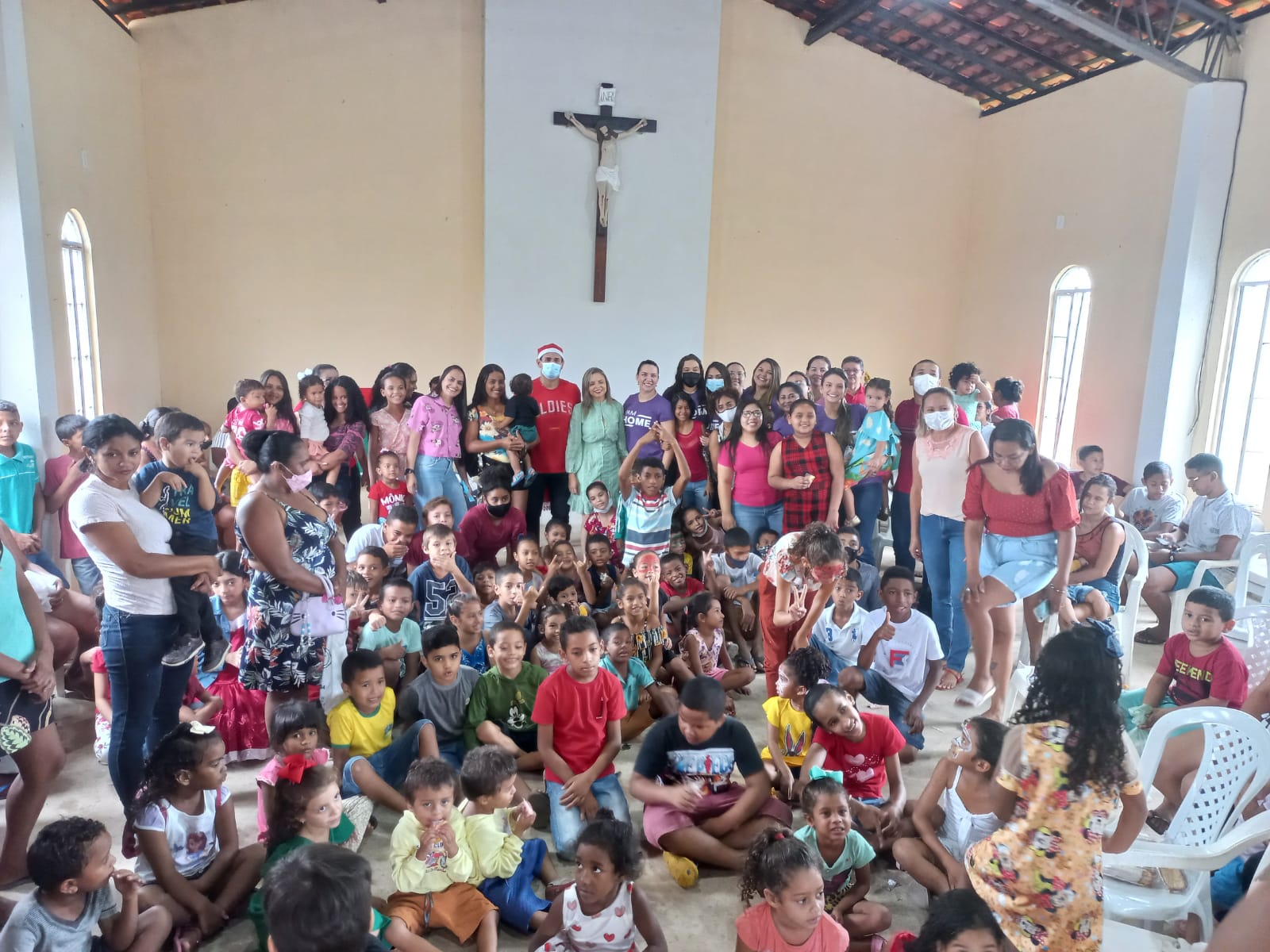 Na capela Santo Antônio, crianças de todas as idades participaram desse momento e saíram encantadas. Na ocasião foram distribuídos presentes, lanches e sorteado cestas básicas. Também, não faltou brincadeiras e pinturas temática de Natal nos rostos sorridentes das crianças.