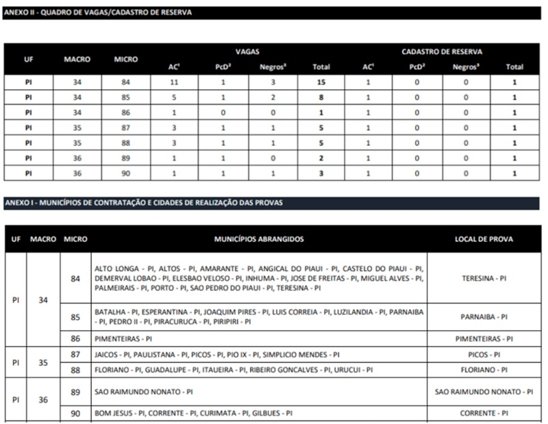 · Piauí: 39 imediatas e 7 para cadastro de reserva
