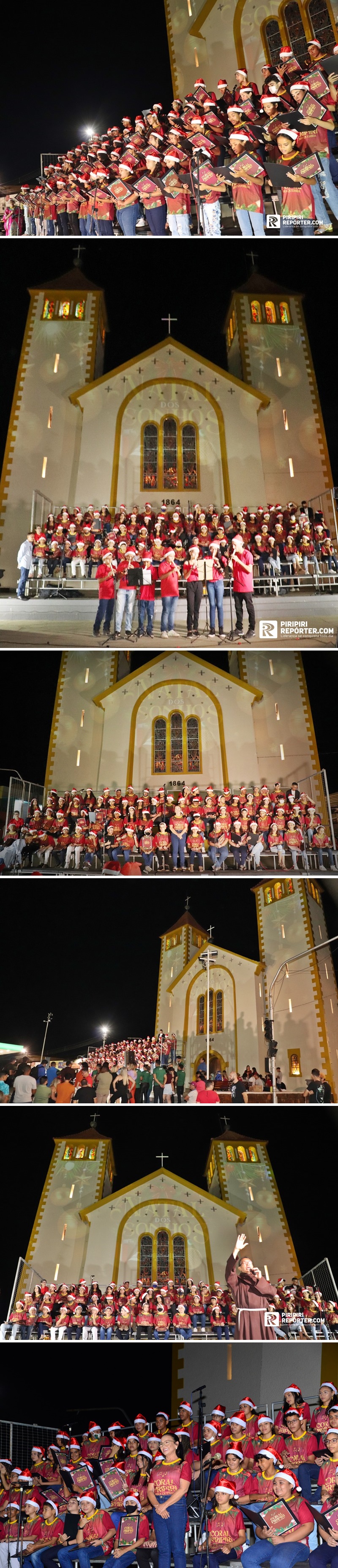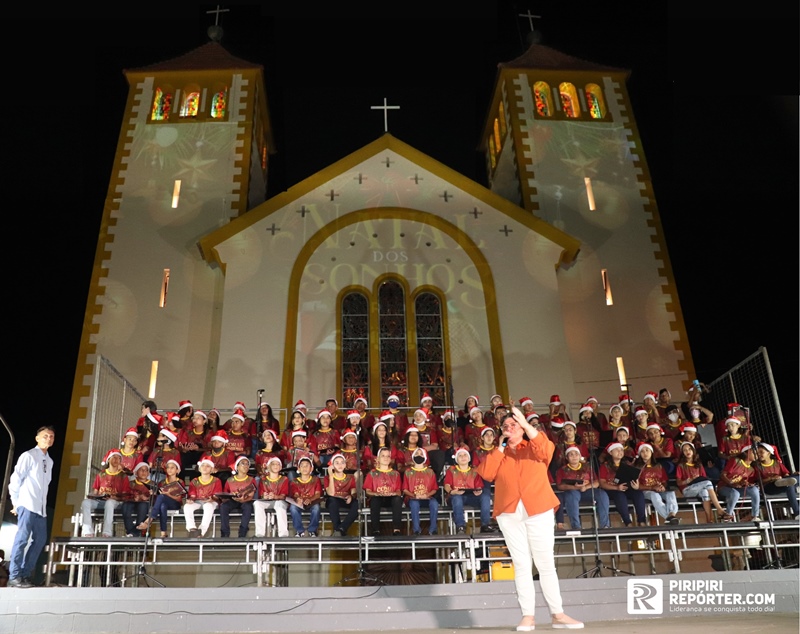 A Prefeitura de Piripiri, por meio da Secretaria Municipal de Comunicação (SECOM), realizou, nesta quinta (22/12), a Cantata Natalina com o Coral Piripiri Terra Querida na frente da Igreja Matriz de Nossa Senhora dos Remédios. O espetáculo contou com a participação de 120 crianças da rede municipal de ensino que interpretaram clássicos do Natal.