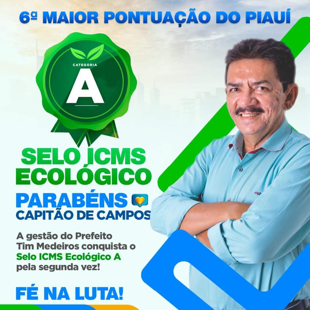 A gestão do atual prefeito de Capitão de Campos conquista pela segunda vez o Selo A do ICMS Ecológico. Esse selo garante ao município repasses de parcelas maiores de fundos do Estado do Piauí ao município podendo ser usado em desenvolvimento da cidade.
