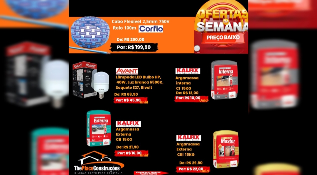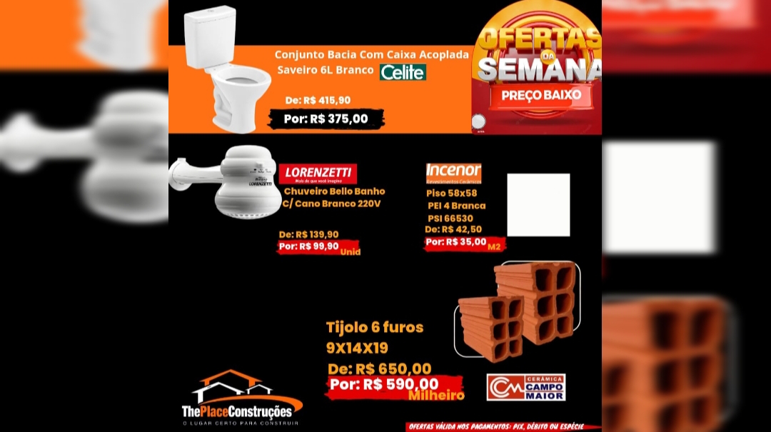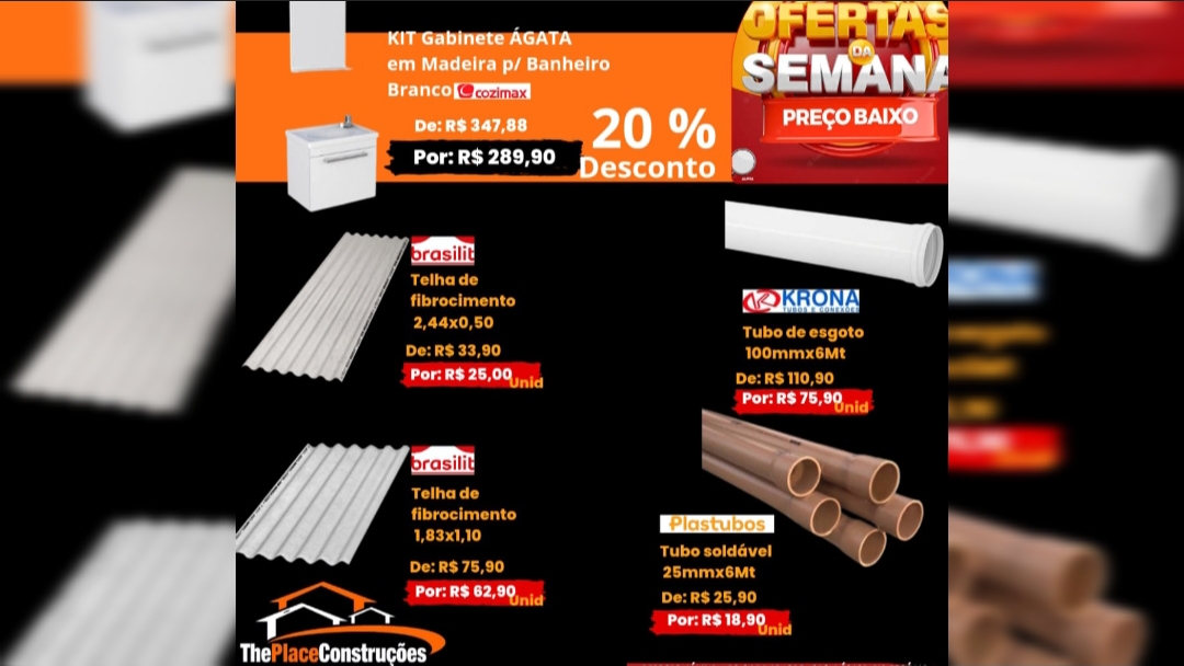 Reforma dentro do prazo é na The Place Construções. Então corra para loja e confira as ofertas da semana.