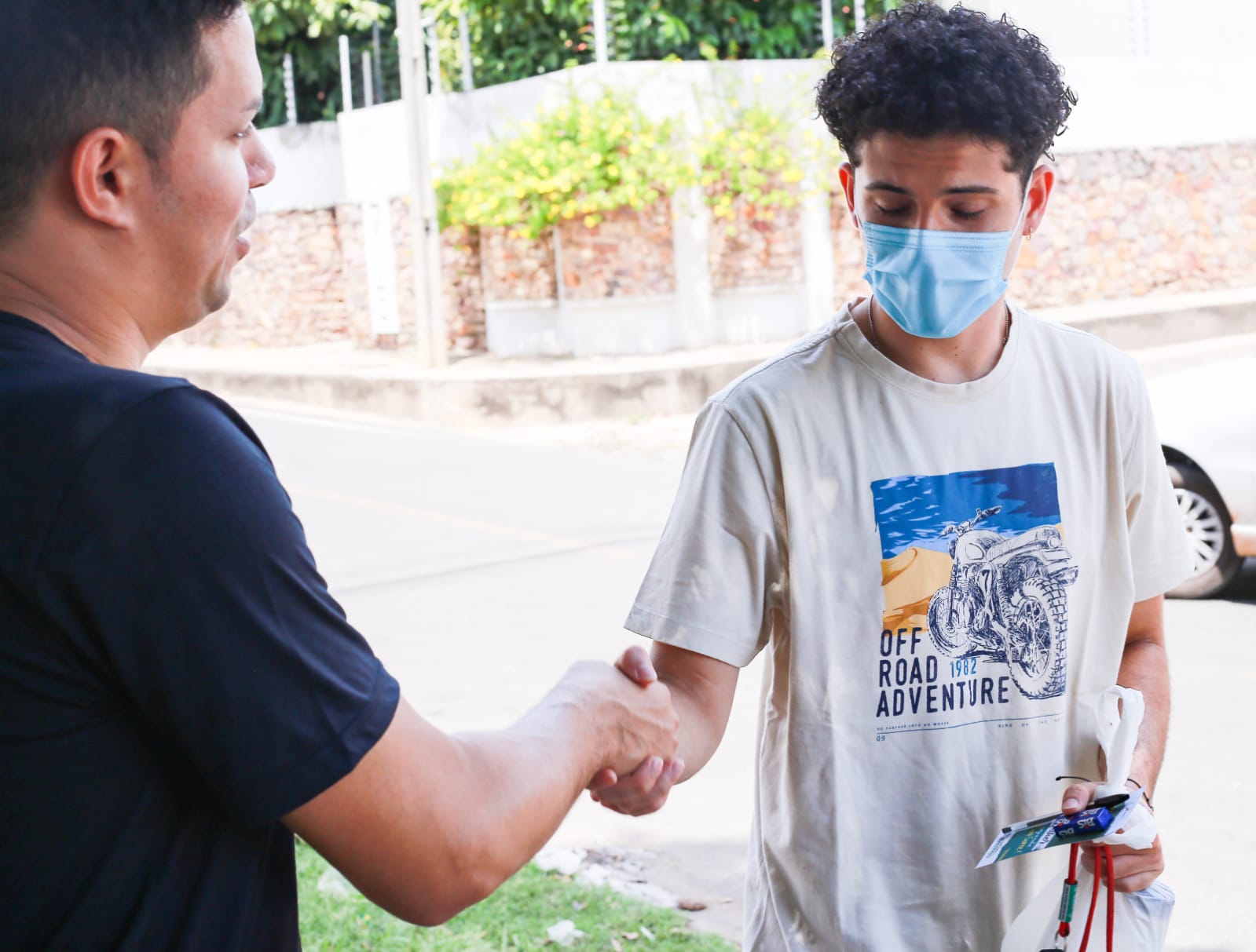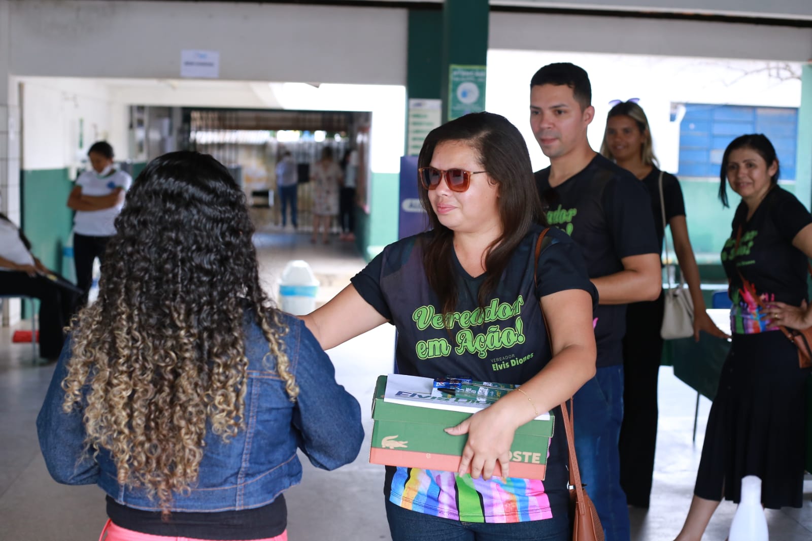 Vereador Elvis Diones juntamente com sua equipe de trabalho, realiza a entrega de brindes à todos os candidatos. O objetivo é incentivar os estudantes a enfrentar as provas com mais confiança.