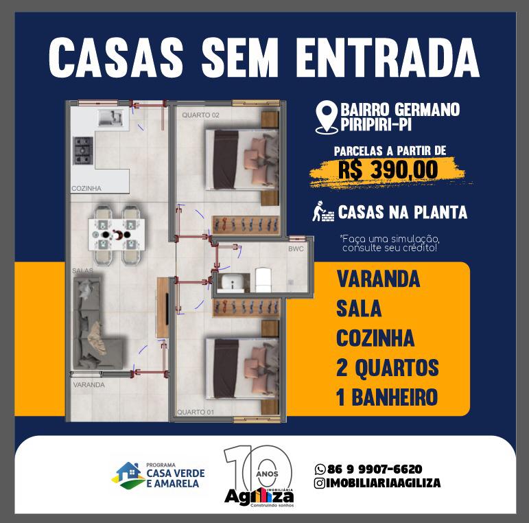 IMPERDÍVEL! Casas em Piripiri, no bairro Germano, com parcelas a partir de R$ 390! Perto da escola Joaquim Cavalcante, a menos de 2 km do centro da cidade.