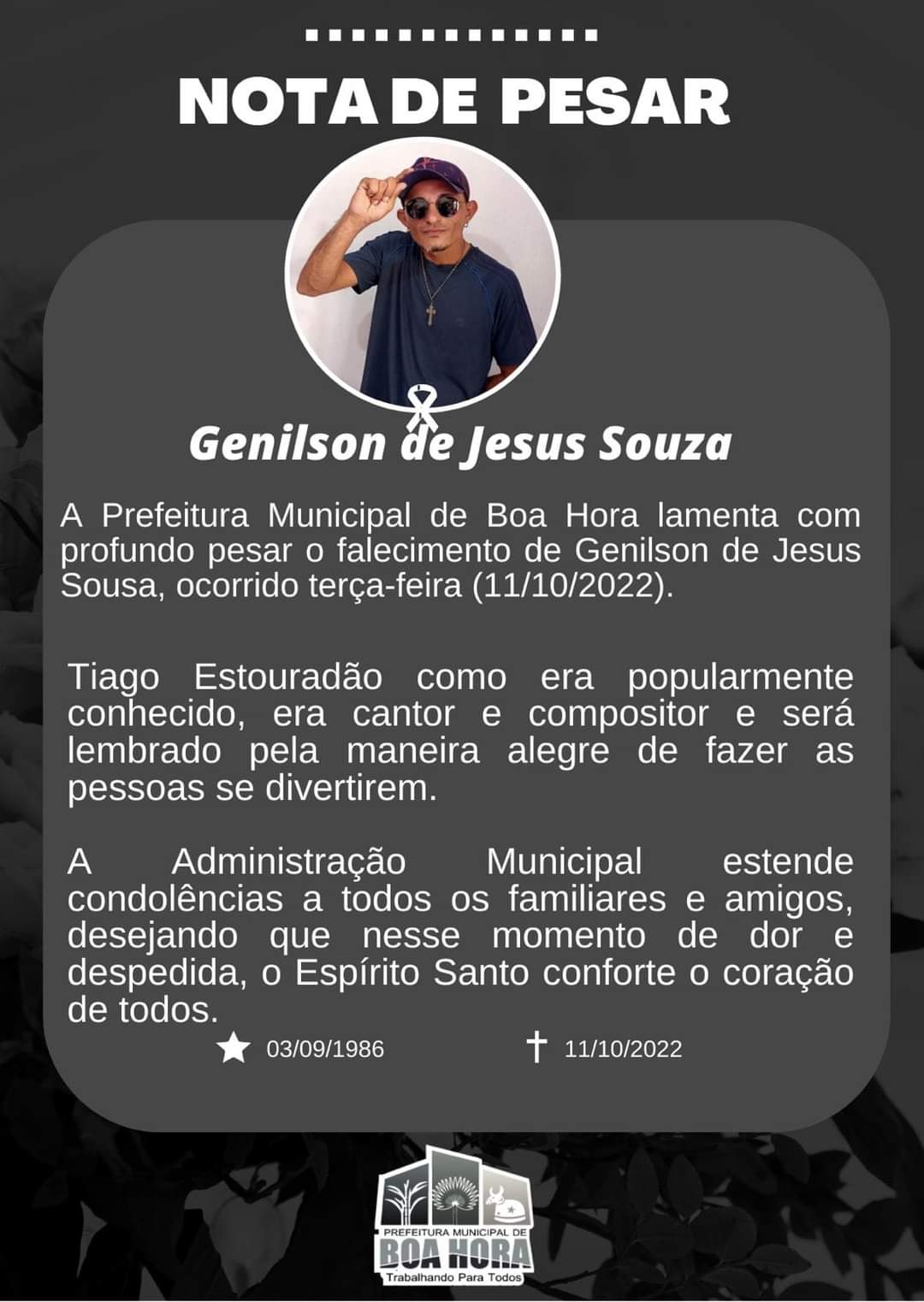 Através de nota, a Prefeitura de Boa Hora lamentou a morte do artista.