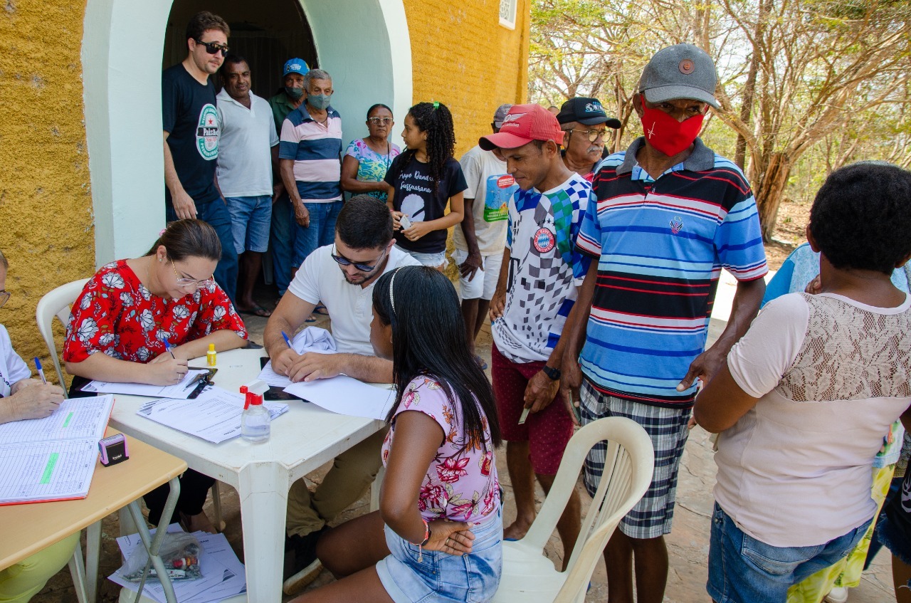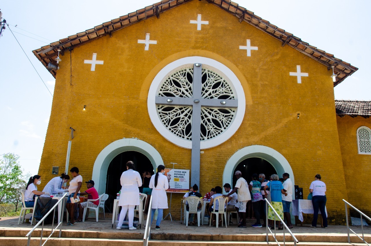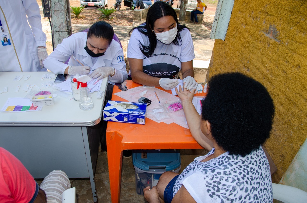 Momento em que prestaram serviços de testagens rápidos, aferição de pressão arterial, dosagens de glicemia, distribuição de hipoclorito de sódio e apresentaram informações sobre os cuidados com a água de poço antes do consumo.