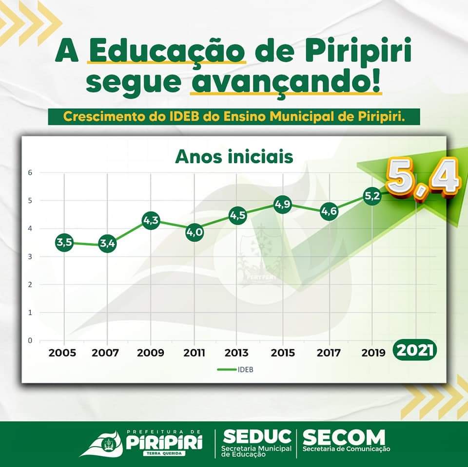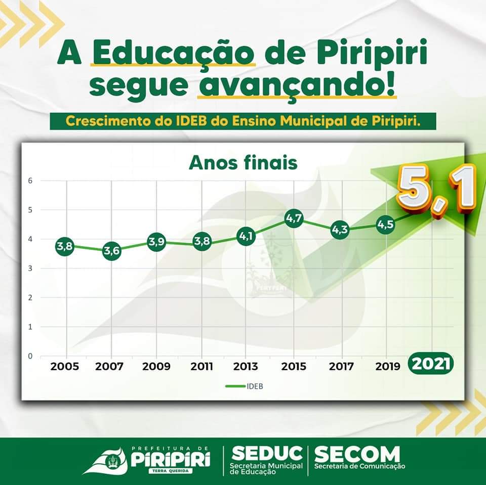A Rede Municipal de Ensino de Piripiri comemora esse resultado como fruto do esforço de todos e de um trabalho pautado na valorização do professor e de uma metodologia pedagógica que direciona o aluno a pensar e também a aplicar os conhecimentos adquiridos em sala de aula.