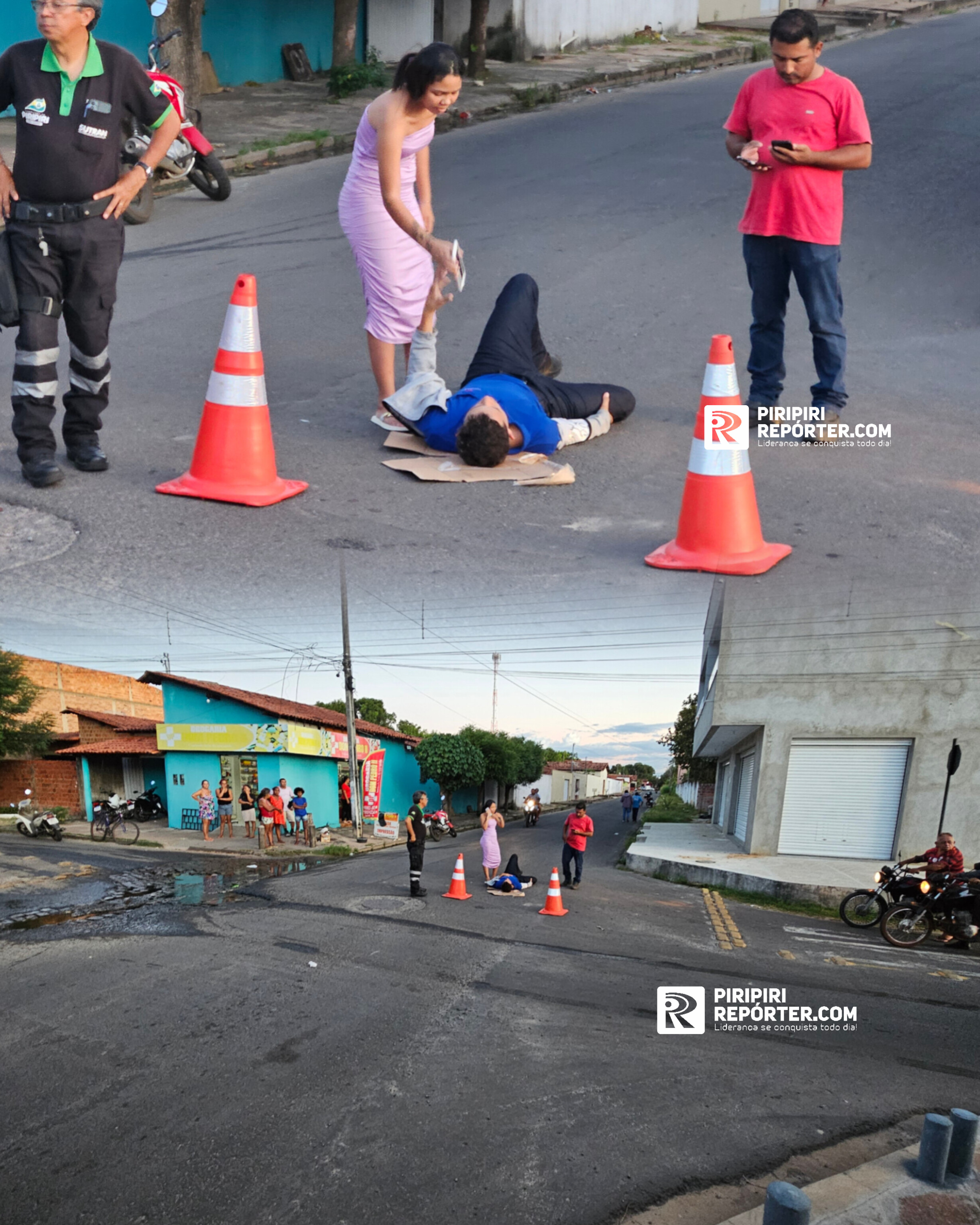 De acordo com testemunhas, o veículo invadiu a preferencial, colidindo com a moto de Henrique. No momento do acidente, ele apresentava dores no ombro e havia suspeitas de fratura na clavícula. A equipe de reportagem do Piripiri Repórter esteve no local e observou que Henrique estava sendo aguardado para atendimento do SAMU.