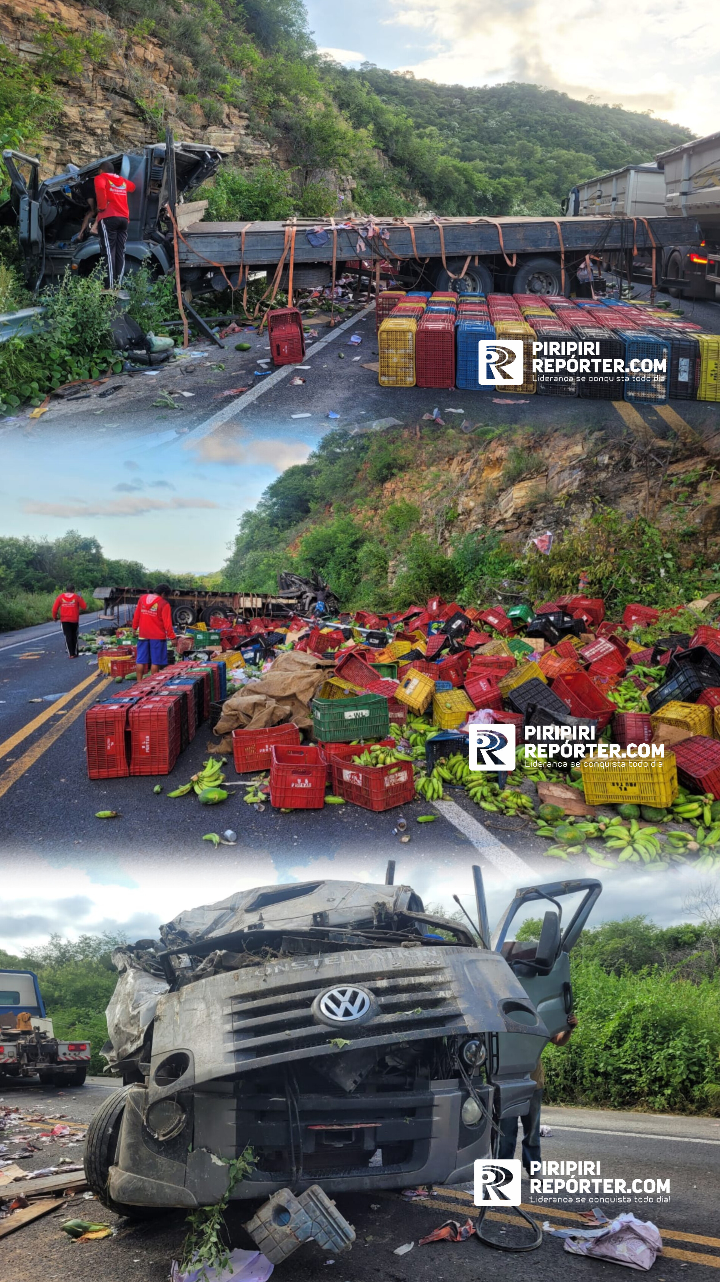 Na madrugada deste dia 11 de abril, a equipe da Polícia Rodoviária Federal (PRF) foi acionada para atender um acidente de trânsito na BR-222, na cidade de São João da Fronteira, próximo à divisa com o estado do Ceará. Ao chegar ao local, os agentes constataram que se tratava do capotamento de um caminhão carregado com frutas, que tinha como destino a cidade de Teresina.