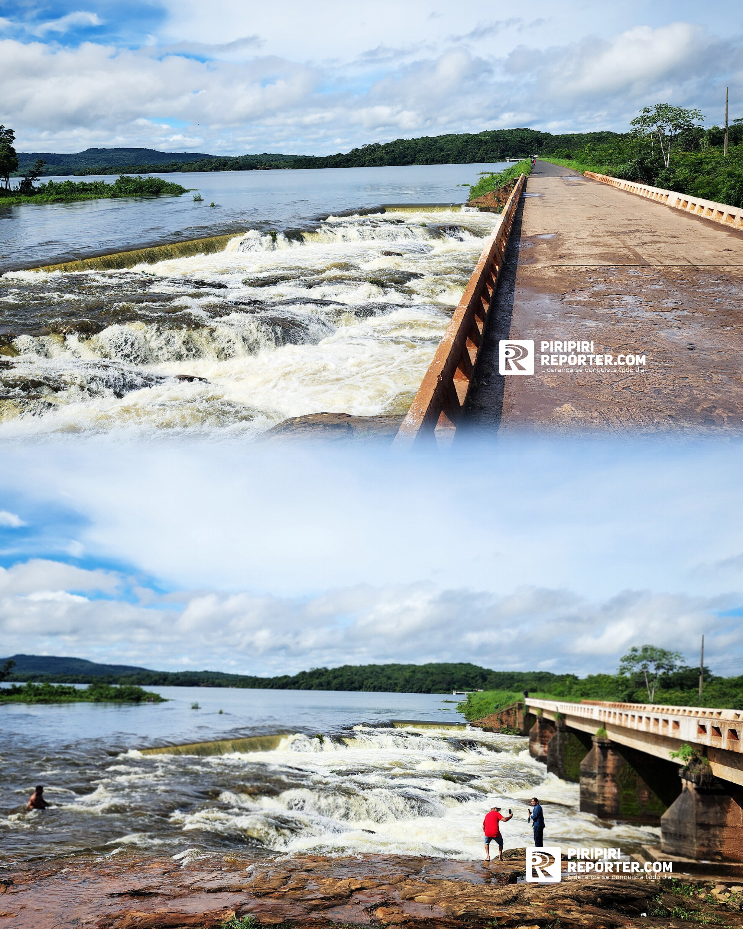 As imagens destacadas mostram o impressionante cenário formado pelas águas, que agora fluem em grande volume, atraindo a atenção de moradores e visitantes.
