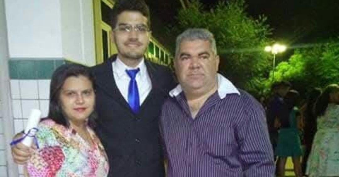 Wellington ladeado por seus pais, Rita e Edson Leite.
