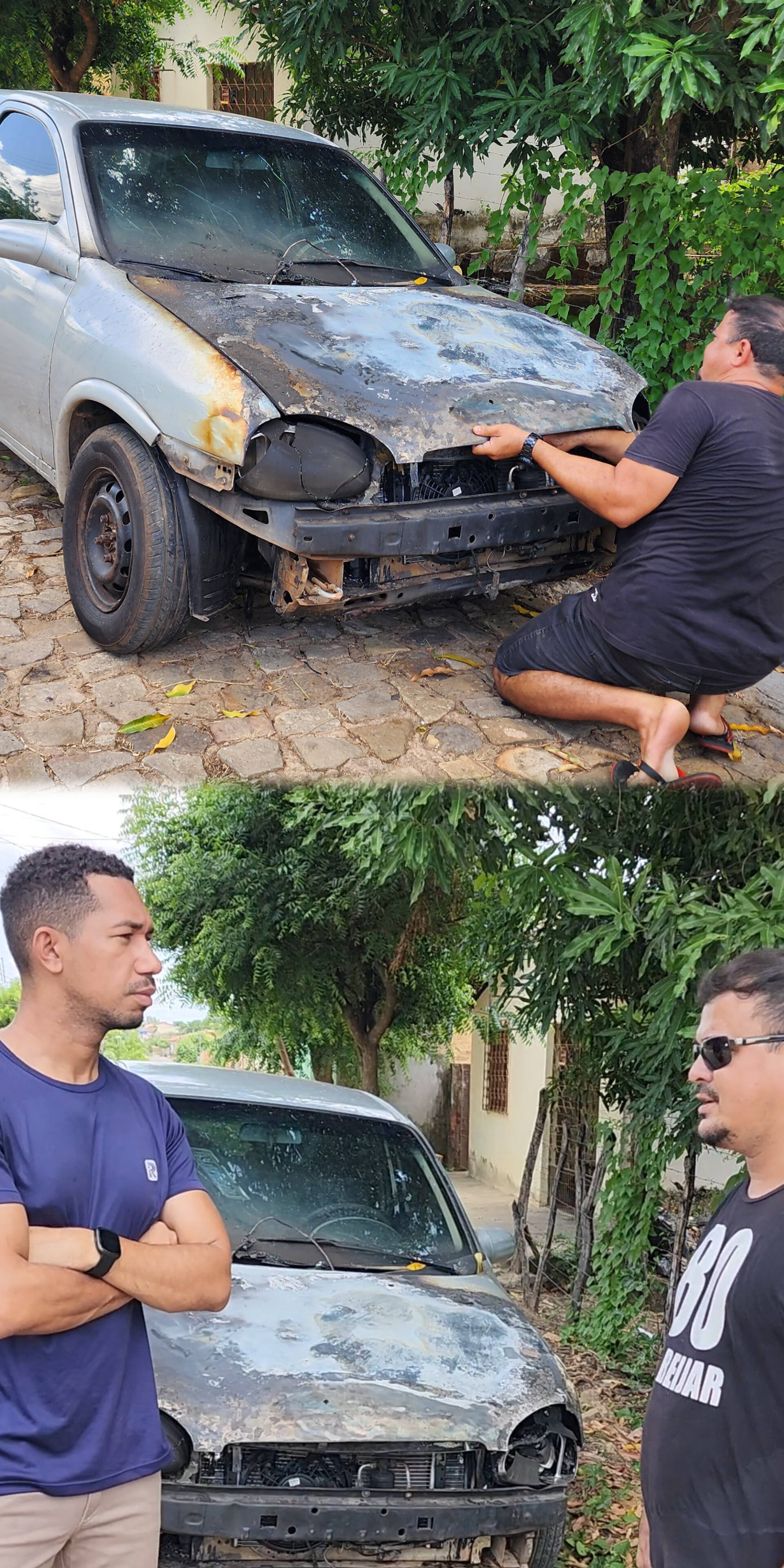 Os Bombeiros foram acionados e chegaram rapidamente ao local, completando o combate ao incêndio. Apesar dos esforços da equipe e dos moradores, o carro foi severamente danificado e a perda foi considerada total.