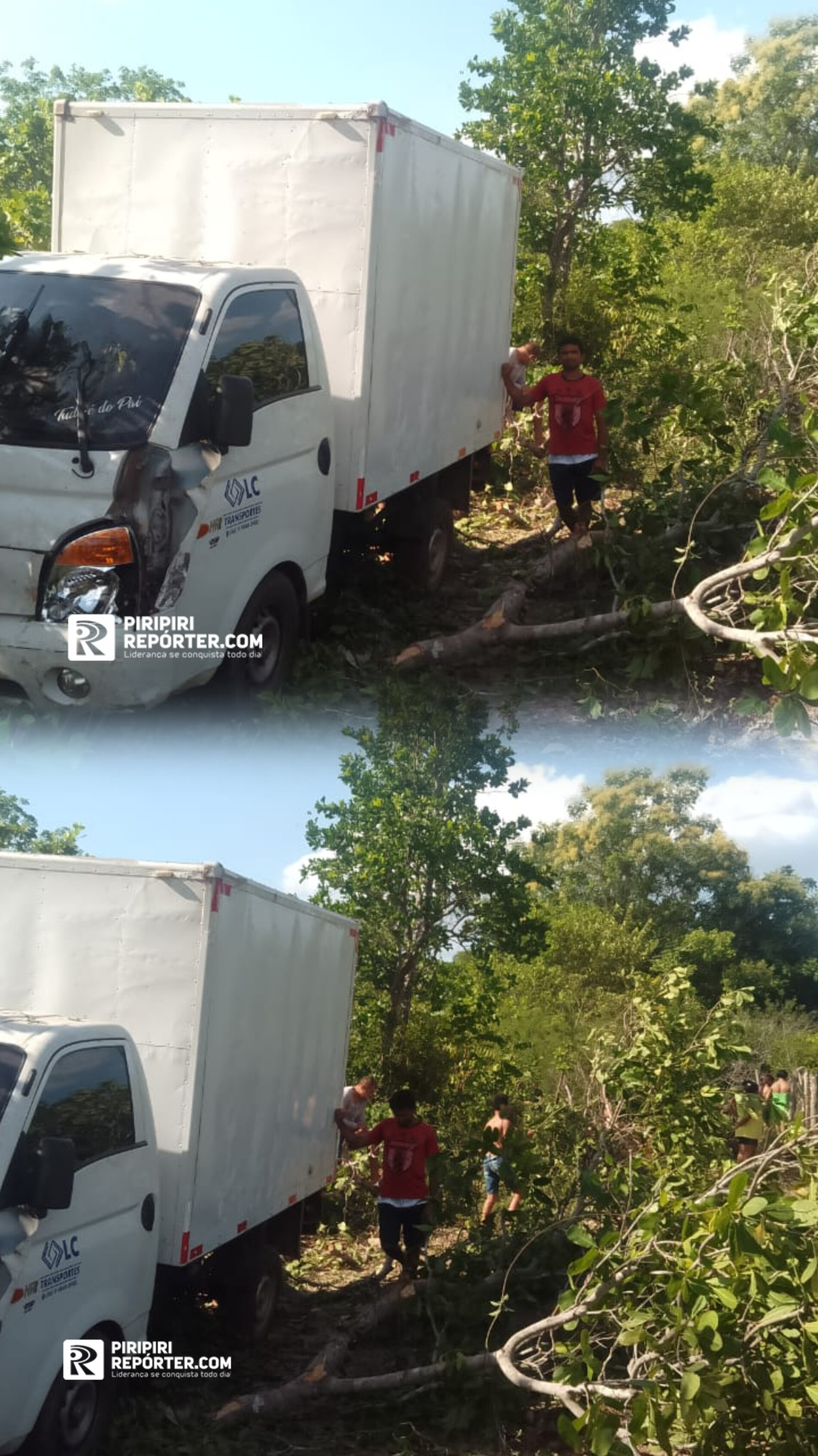 Um pequeno caminhão baú perdeu o controle devido a problemas na direção, que travou, fazendo com que o veículo descesse um barranco e colidisse com várias árvores na margem da estrada.
