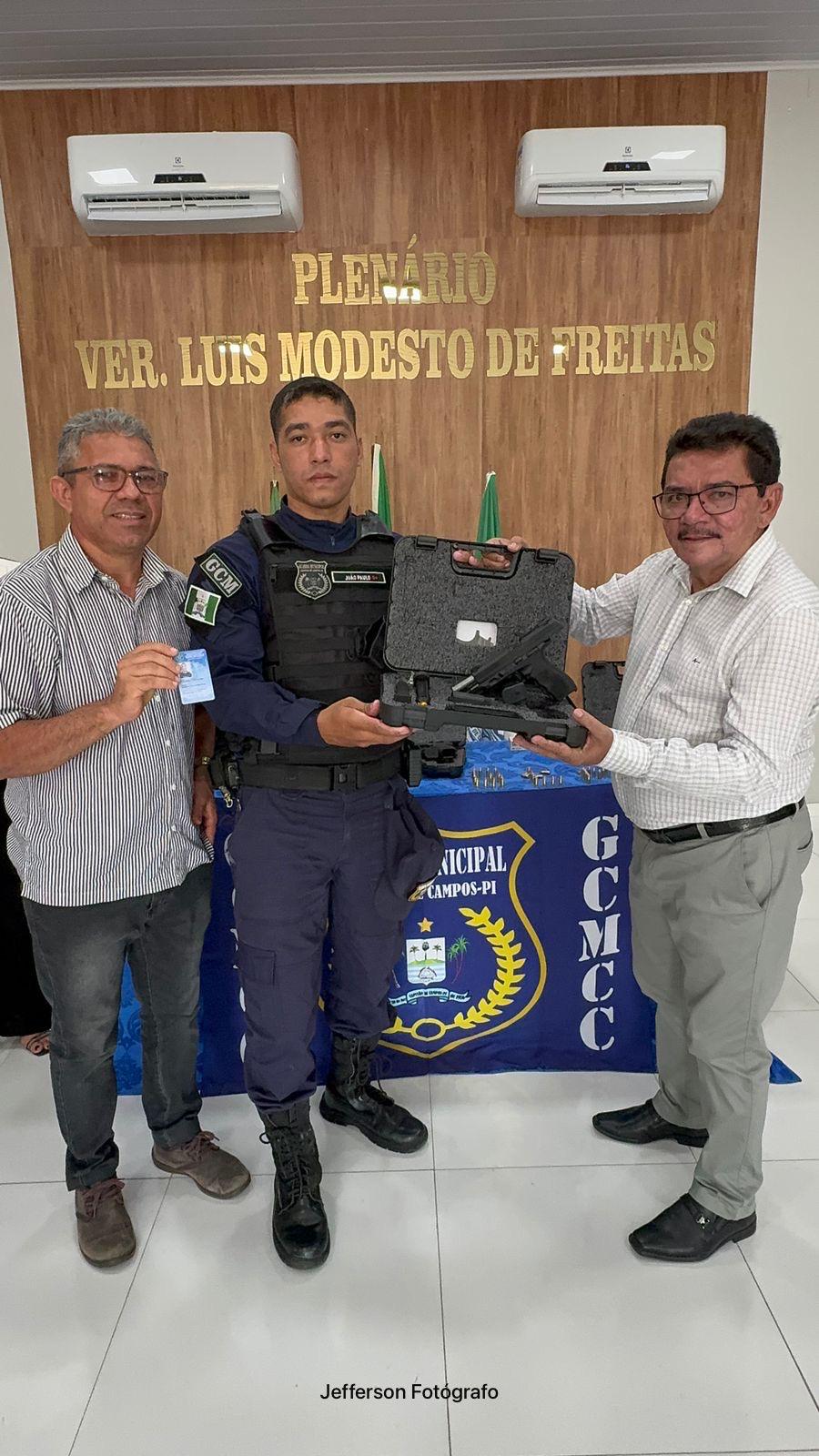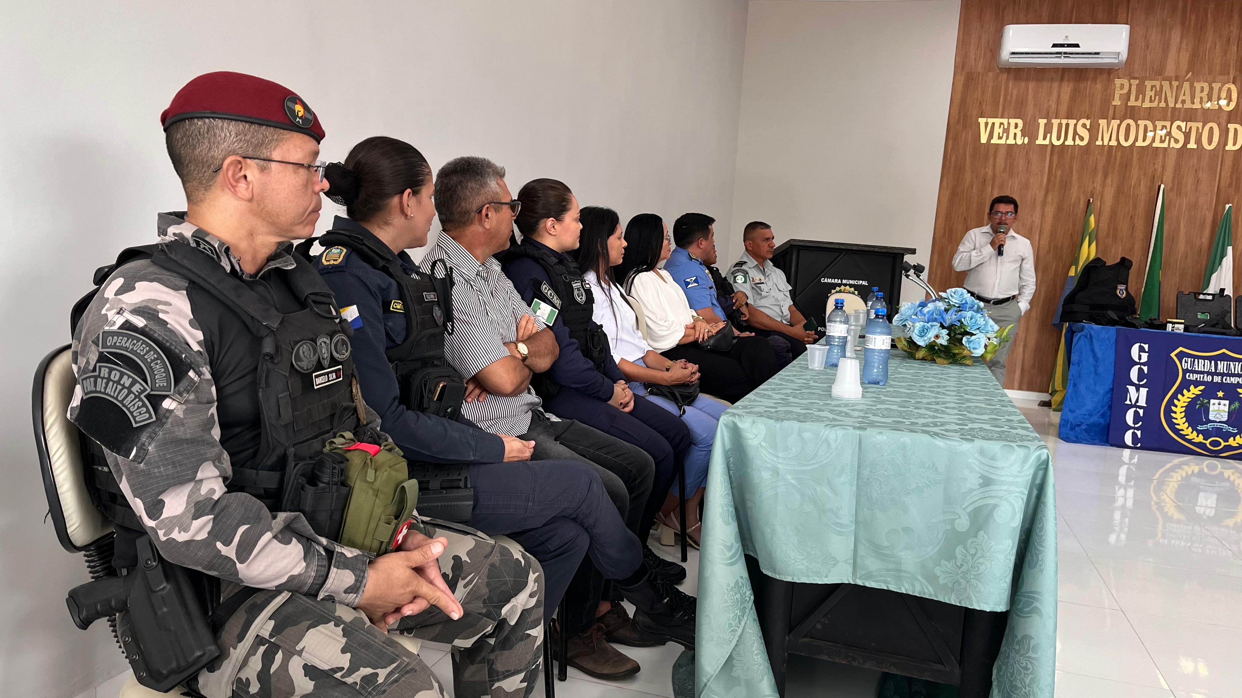 A cerimônia de entrega das armas de fogo para a Guarda Civil Municipal de Capitão de Campos aconteceu na manhã desta quarta-feira (04) no plenário da Câmara Municipal.