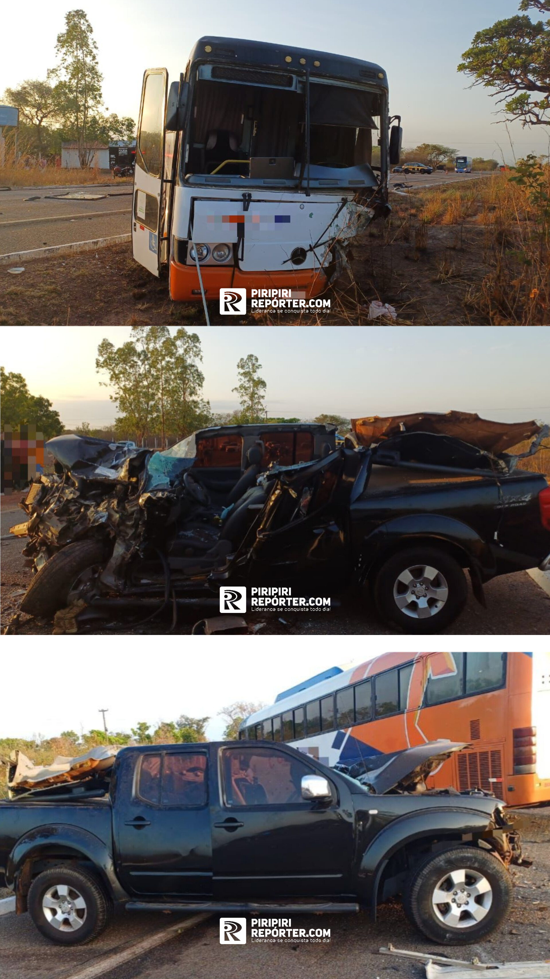 A Frontier colidiu com o ônibus na BR 343