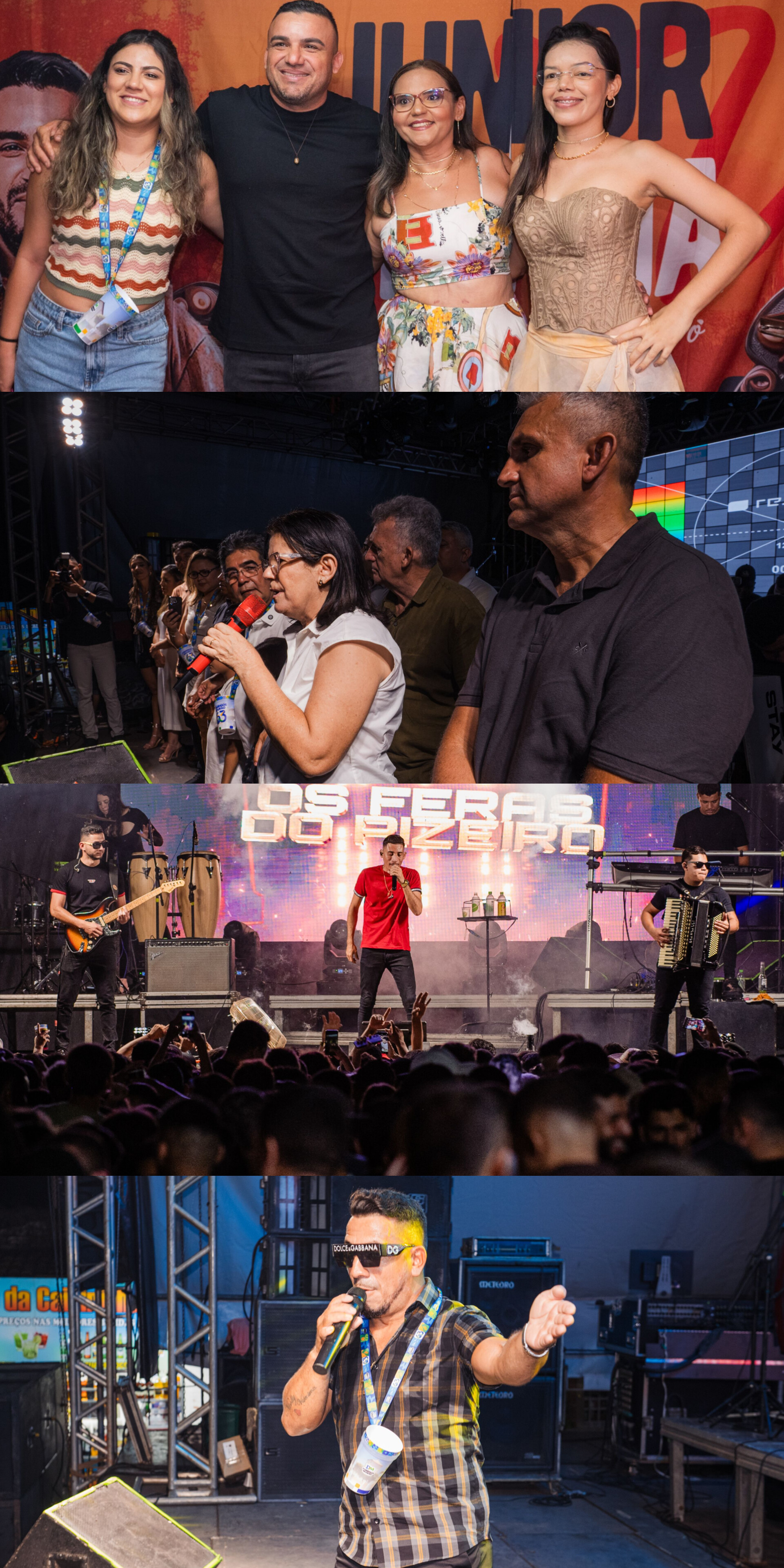 A programação musical teve início com o cantor Raizeira, que abriu a noite e animou o público desde as primeiras horas do evento. Em seguida, quem comandou o palco foi o cantor Júnior Vianna, levando uma sequência de sucessos que empolgaram ainda mais os presentes. O encerramento da festa ficou por conta da banda Os Feras do Piseiro, que manteve a energia em alta até o fim da noite.