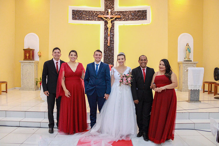 Cada detalhe da celebração foi cuidadosamente planejado para tornar o dia inesquecível. O casal, rodeado pelo carinho dos presentes, celebrou sua união com muita emoção e felicidade.