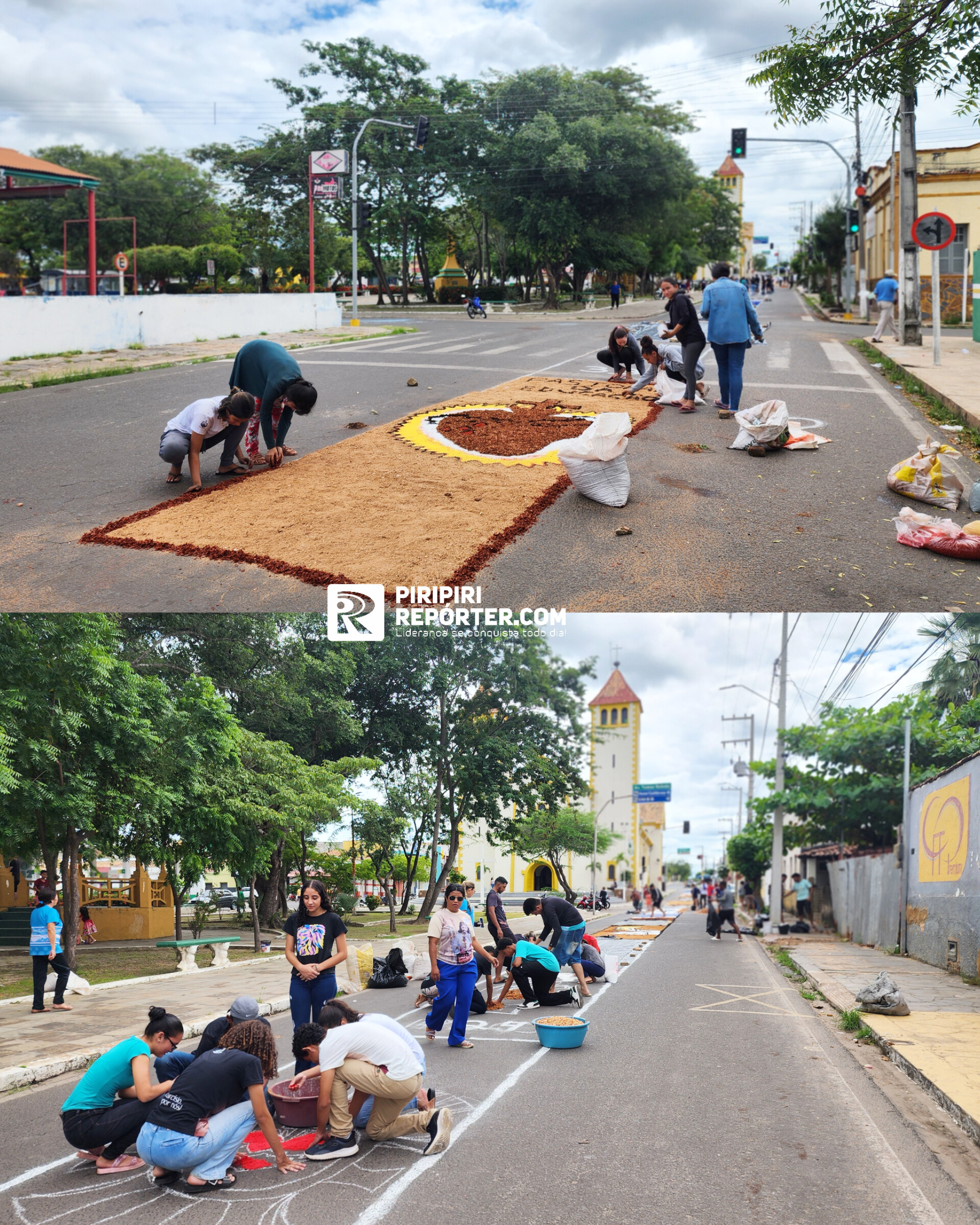 Nesta quinta-feira (30), as Paróquias Nossa Senhora dos Remédios e Sagrado Coração de Jesus celebram o dia de Corpus Christi com uma tradição que encanta a todos: a confecção dos tradicionais tapetes. Instituições convidadas se uniram para criar belas obras de arte que enfeitam as ruas em torno das paróquias, em um gesto de devoção e fé.