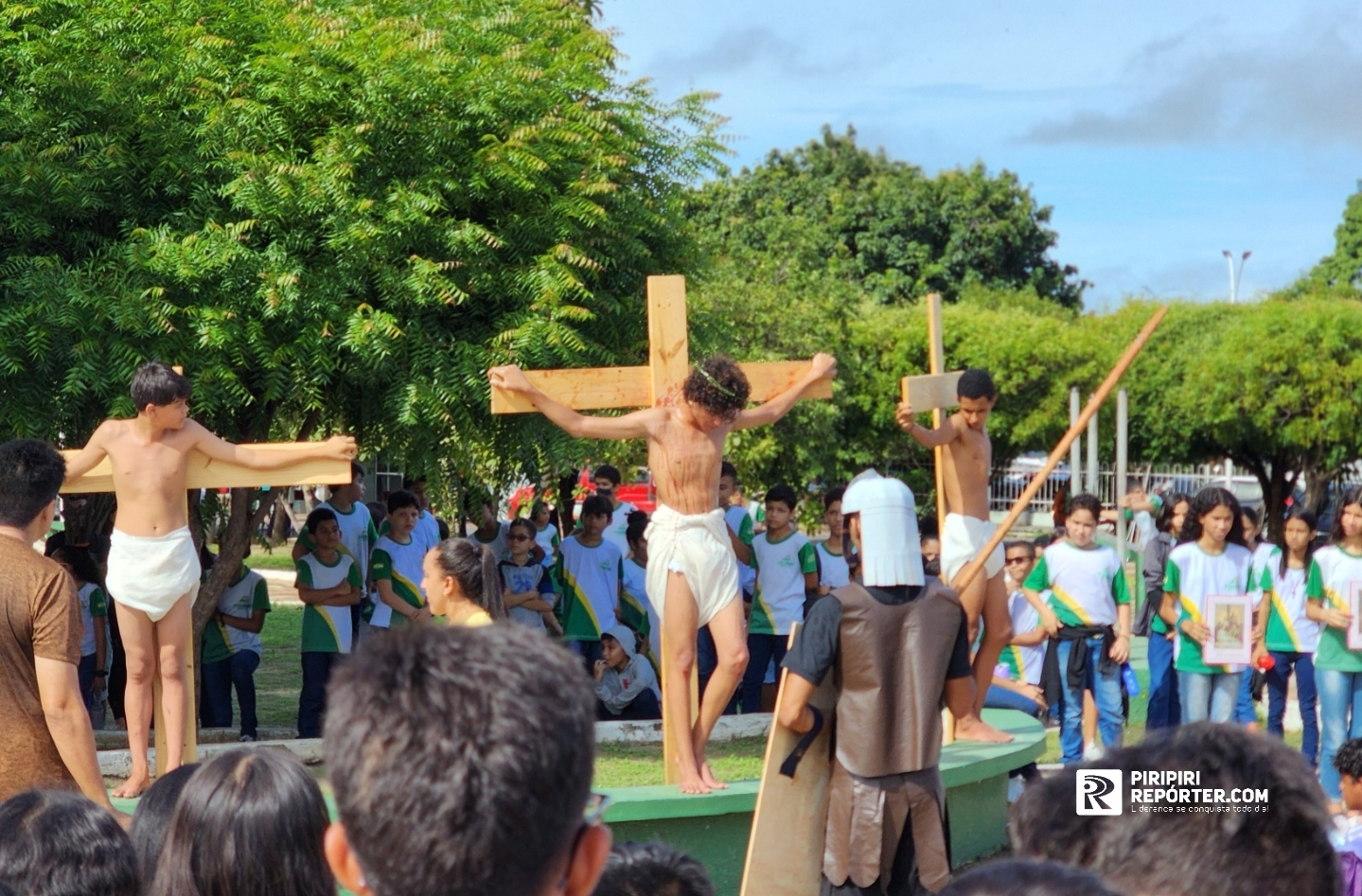 Em Piripiri, alunos do colégio Irmã Ângela encenam e Via Sacra. IMAGENS