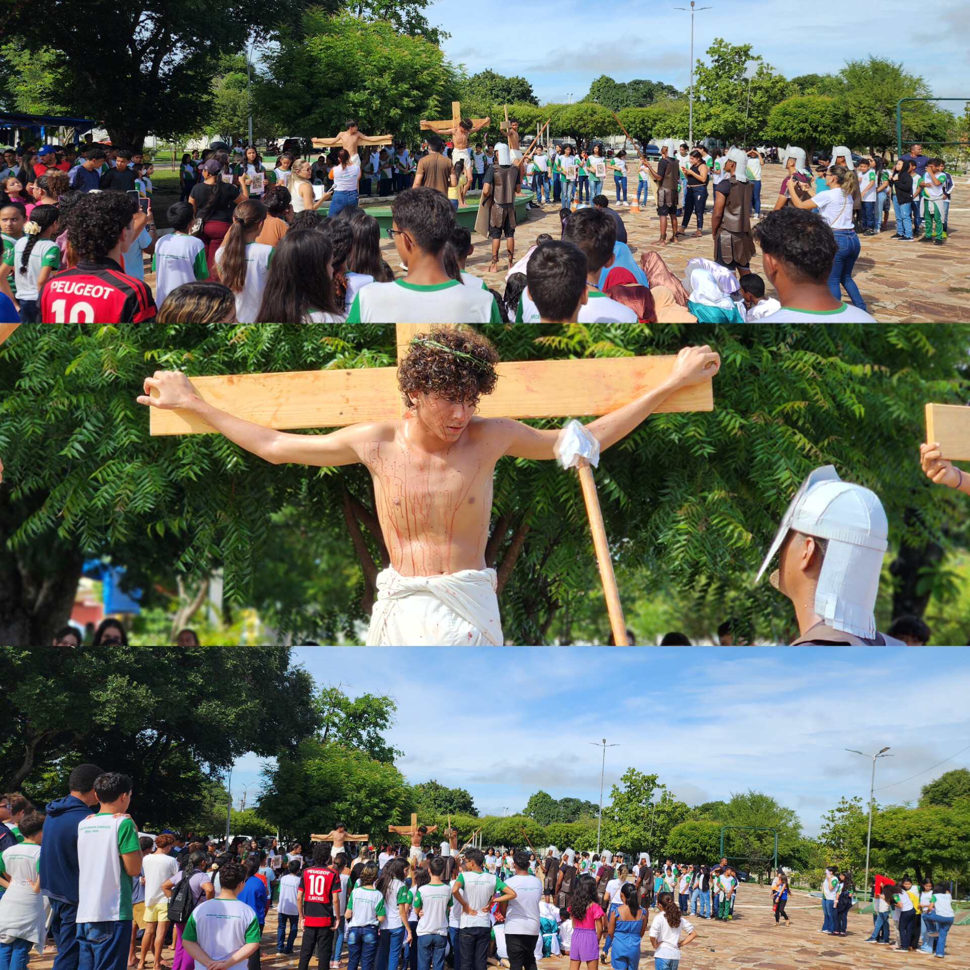 Os talentosos alunos do Centro Educativo Municipal Irmã Ângela, em Piripiri, brilharam ao apresentar a emocionante encenação da Via Sacra. Com dedicação e talento, os jovens atores envolveram a comunidade em uma representação marcante das estações que retratam a paixão, morte e ressurreição de Jesus Cristo.