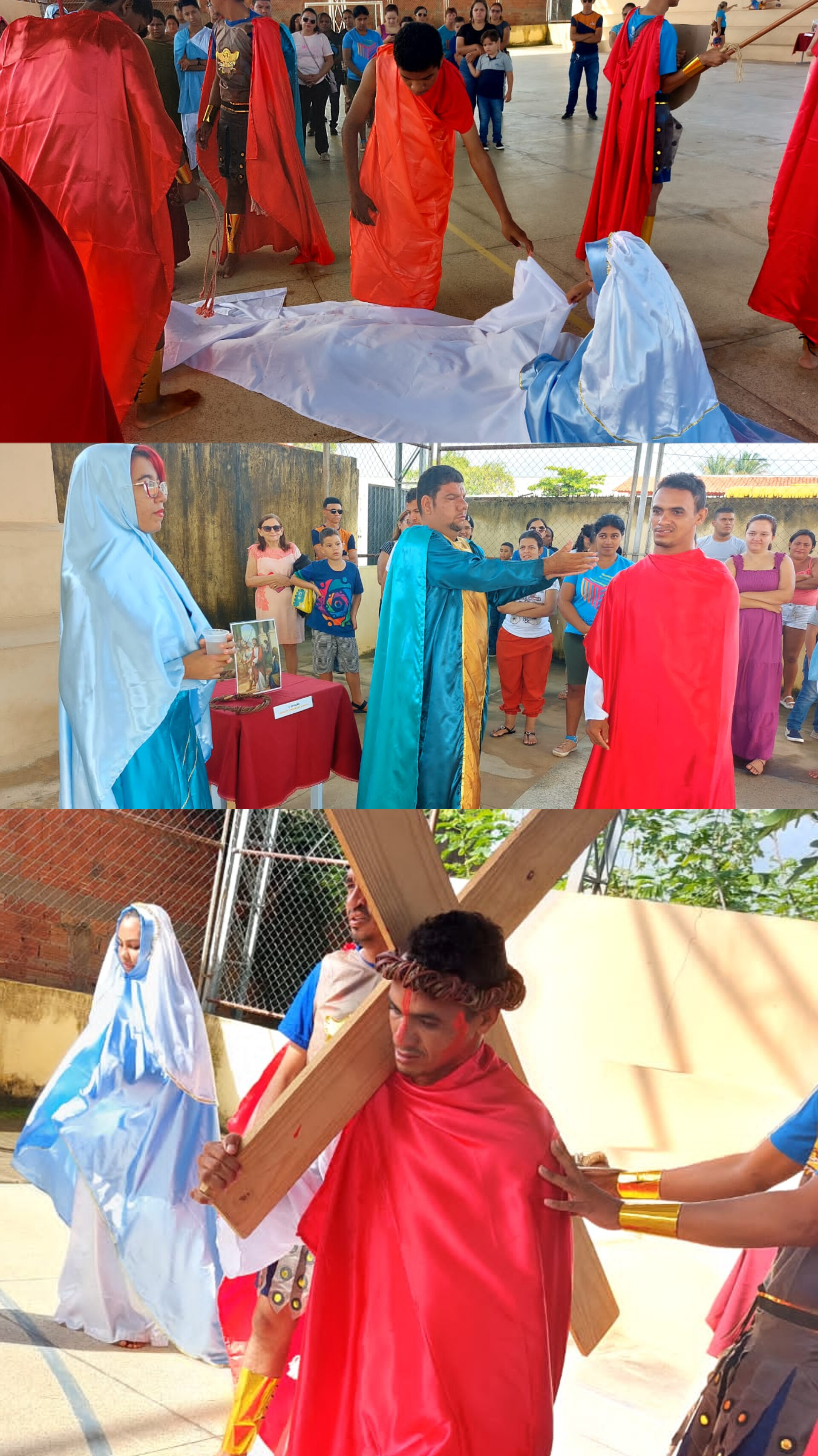 A encenação da Via Sacra se revelou como uma oportunidade para os alunos do Centro Educativo Municipal Irmã Ângela expressarem seu talento, fortalecerem sua fé e compartilharem uma mensagem de esperança e renovação com a comunidade.