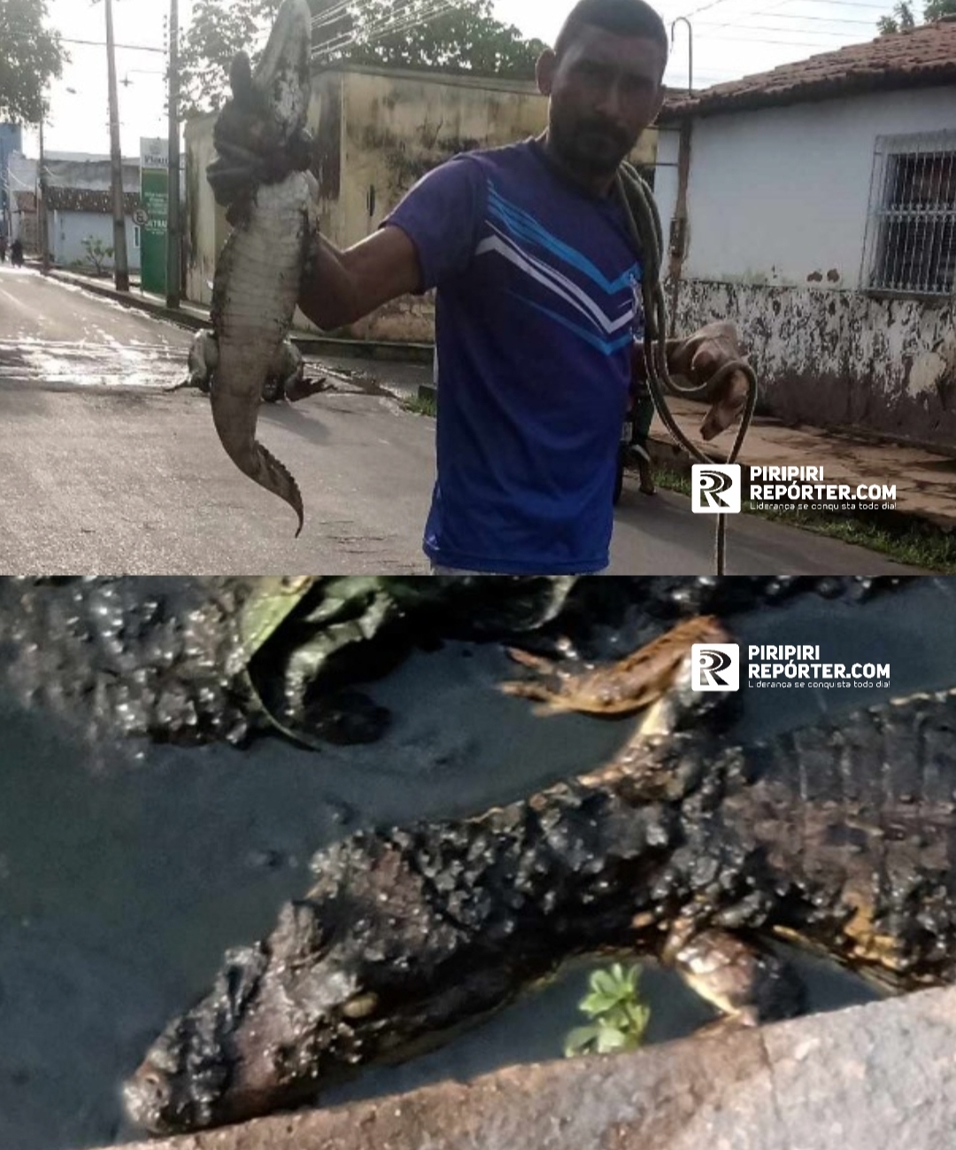 Um dos moradores, munido de uma luva, conseguiu capturar o animal, conforme mostram as imagens obtidas pelo PIRIPIRI REPÓRTER. O jacaré foi avistado na rua Antônio Alves, em frente ao Bar da Salete, causando susto em algumas pessoas que se depararam com ele inesperadamente.