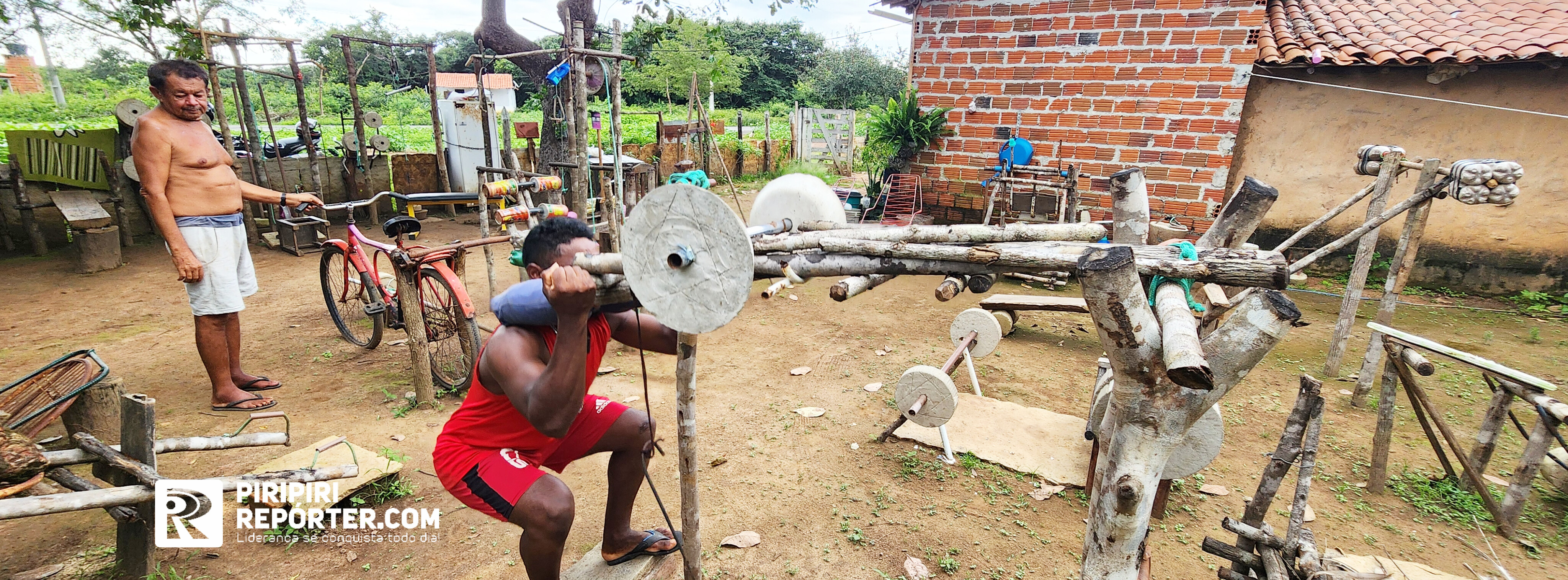 Em uma pequena comunidade na zona rural de Pedro II, a Perua, às margens da rodovia que dá acesso ao município de Piripiri, um exemplo de persistência e criatividade. Leandro, mais conhecido na região como “Balotelli”, transformou o quintal de sua casa em uma academia.