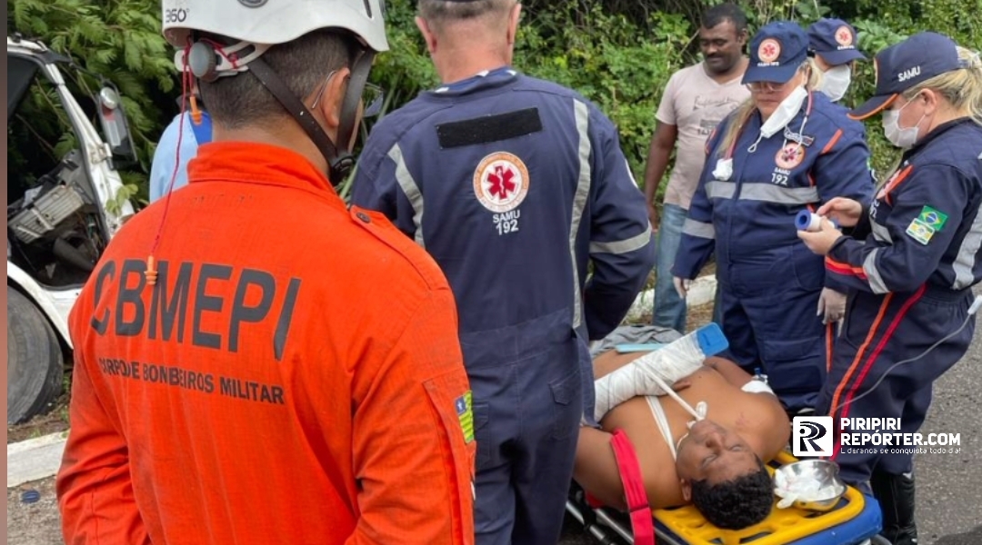 Conforme apuração do PIRIPIRI REPÓRTER, o motorista foi identificado como Danilo Emanoel do Nascimento Costa, de 33 anos, natural de Parnaíba. Ele ficou preso às ferragens e os bombeiros tiveram que realizar um procedimento com equipamento específico para retirá-lo com segurança.