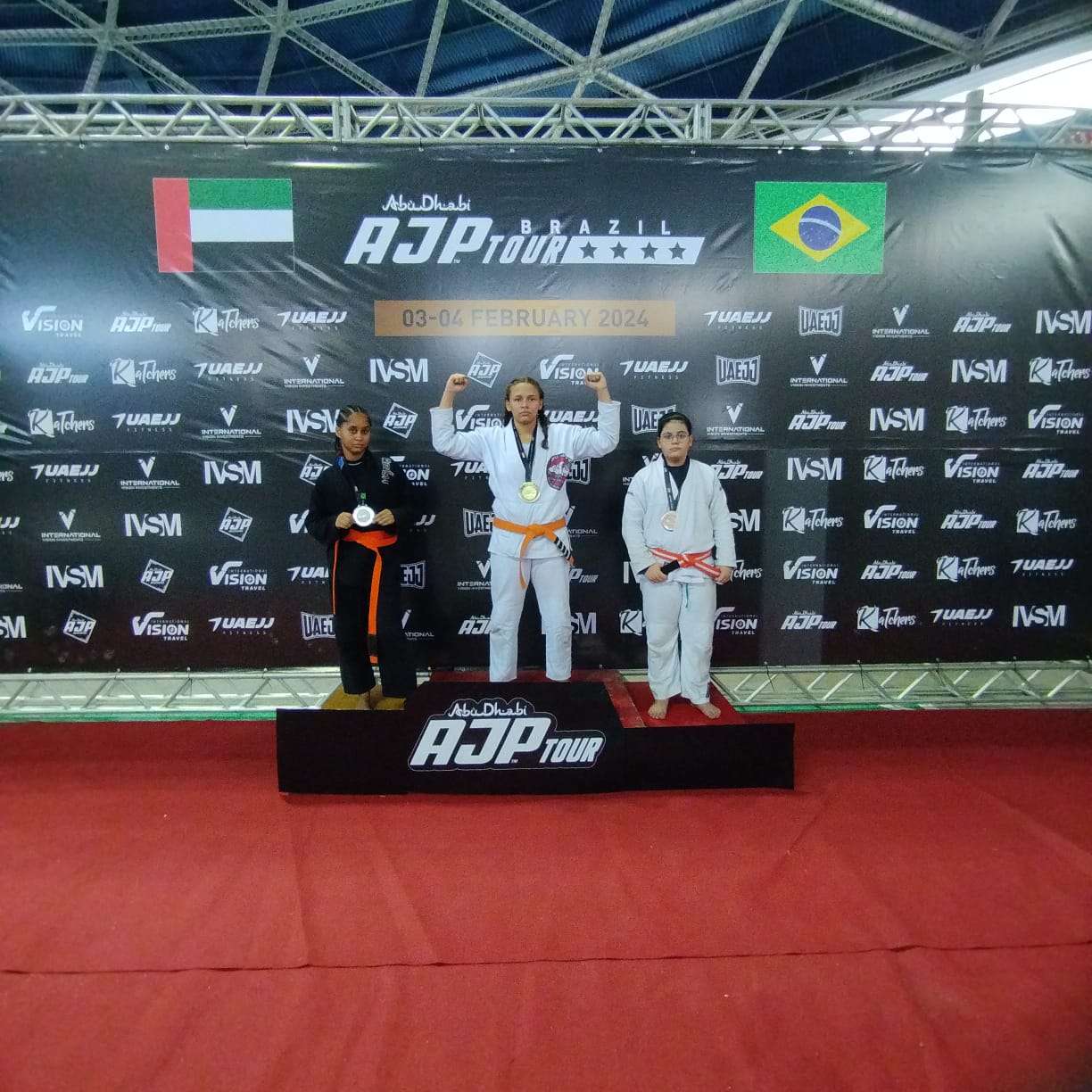 Alunas do projeto QG da Luta se destacaram no campeonato de jiu-jitsu em Fortaleza (AJP TOUR Abu Dhaib), conquistando importantes medalhas. Suzana de Fátima, apesar de competir em uma categoria acima da sua, sagrou-se campeã na faixa amarela leve até 44 kg, garantindo a medalha de ouro. Além disso, Kemilly Louranny também teve um desempenho notável ao competir em uma categoria muito acima da sua e conquistou a medalha de prata na categoria infantil laranja/verde até 75 kg.