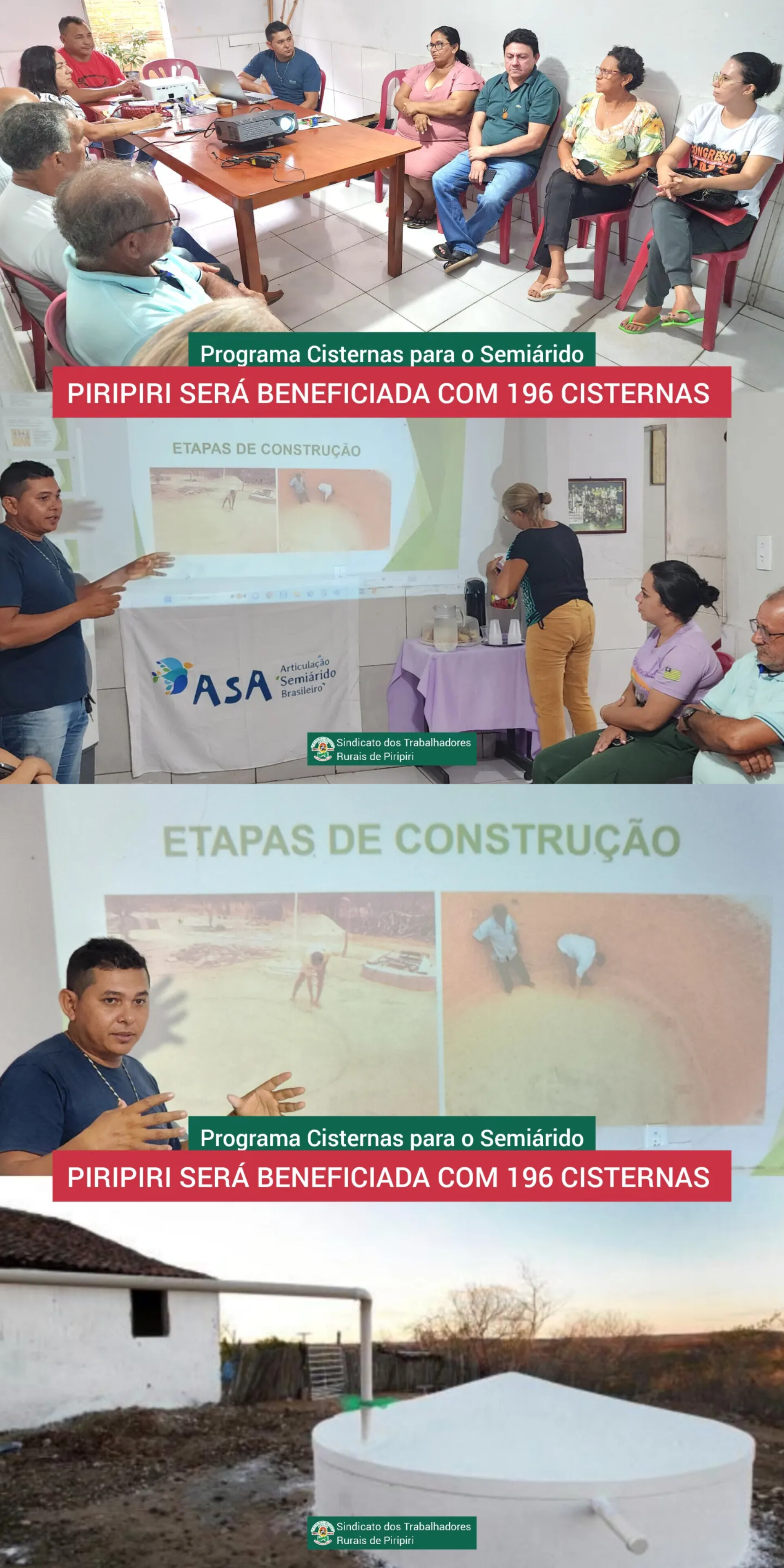 Segundo o presidente do sindicato, Eunice Barros, Piripiri será beneficiada com 196 cisternas.