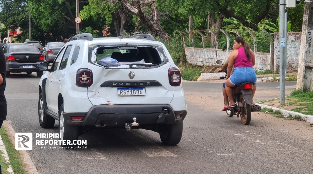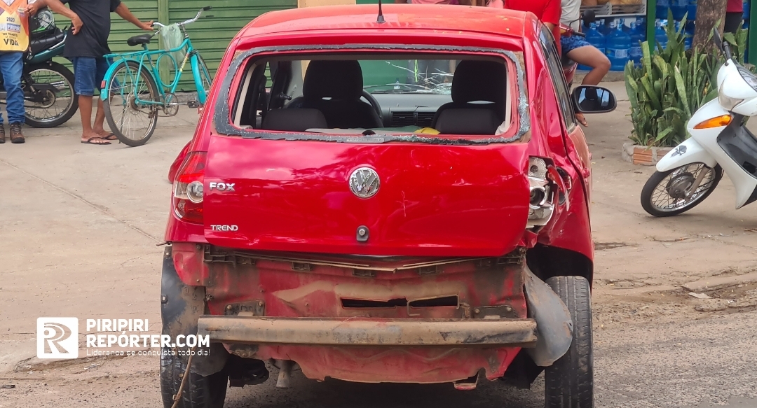 Populares contaram ao PIRIPIRI REPÓRTER que o Renault Duster e a moto estavam parados no sinal (sentido centro) quando o FOX chegou batendo na traseira deles.