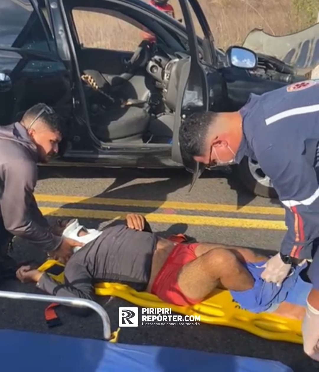 Conforme apuração do PIRIPIRI REPÓRTER, o motorista do Corsa chama-se Valderi e teve um trauma na coluna e no quadril.