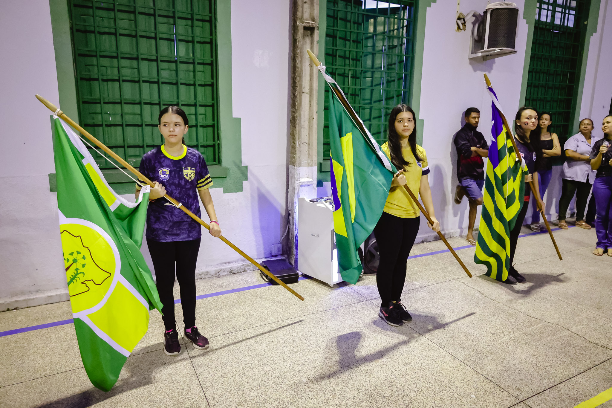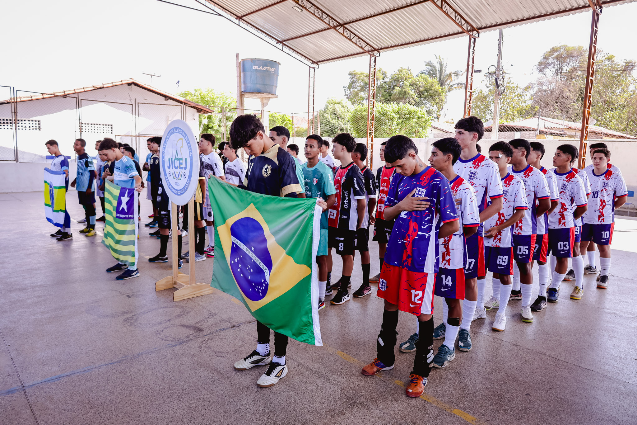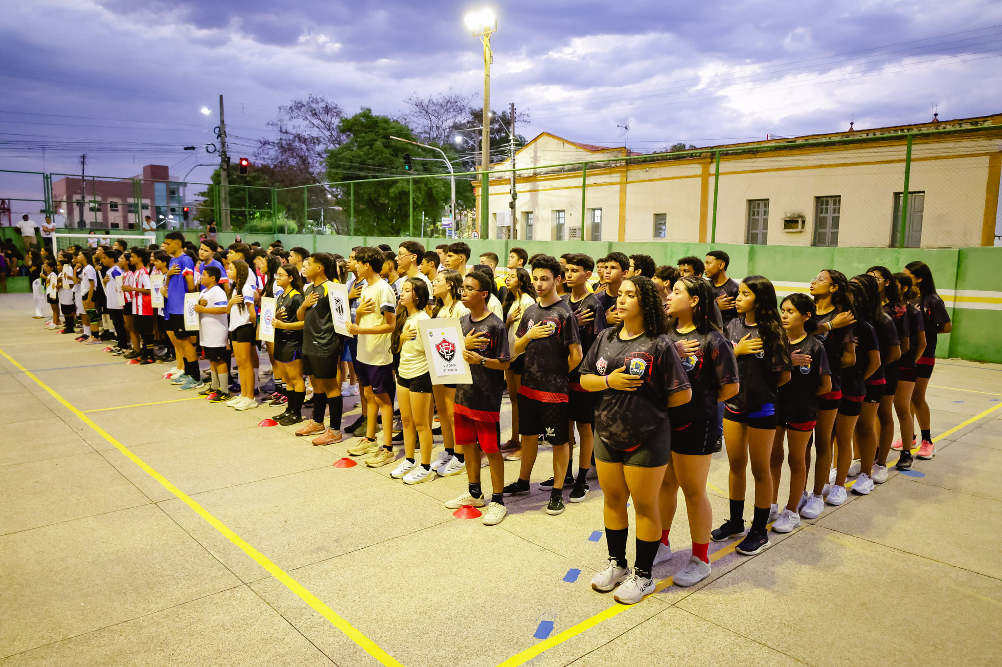 Após os protocolos oficiais, todos entoaram o Hino Nacional Brasileiro, momento que reforçou o clima de patriotismo e responsabilidade entre os jovens atletas.