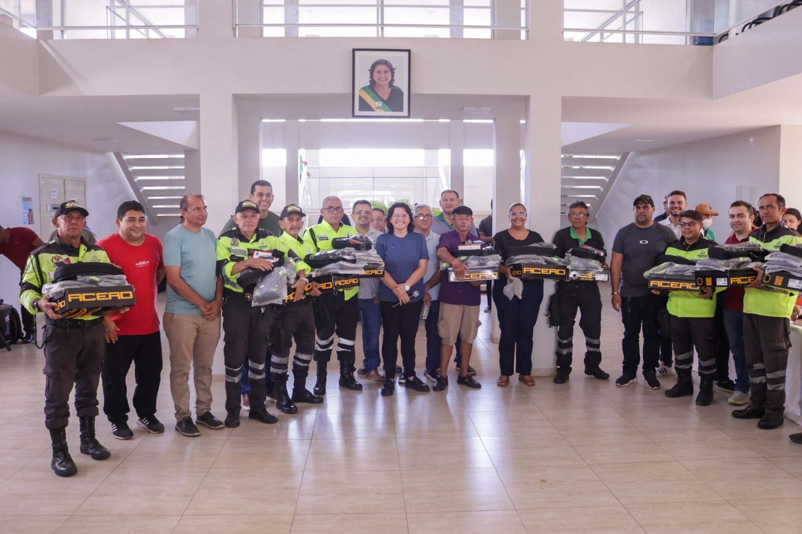 “Foram entregues 12 kits de fardamento, confeccionados com tecido especial para minimizar o calor, além de apito, lanterna e coturno. Também entregamos três veículos novos que servirão muito ao nosso povo. Em breve, teremos ainda melhorias no tráfego, com novas rotatórias”, afirmou a prefeita Jôve Oliveira Monteiro.