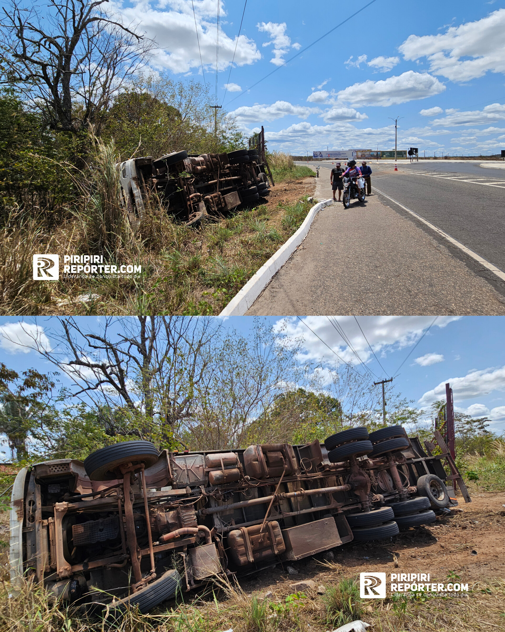Nesta sexta-feira, 5 de setembro de 2025, um acidente envolvendo um caminhão carregado com óleo de coco, azeite de coco e água de coco ocorreu na rotatória do bairro Petecas, que cruza as BR-222 e BR-343.