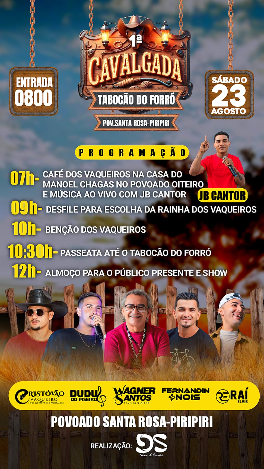 No sábado, 23 de agosto, o povoado Santa Rosa, em Piripiri, será palco da 1ª Cavalgada Tabocão do Forró, evento que promete reunir vaqueiros, moradores e visitantes para um dia repleto de atividades culturais e musicais.