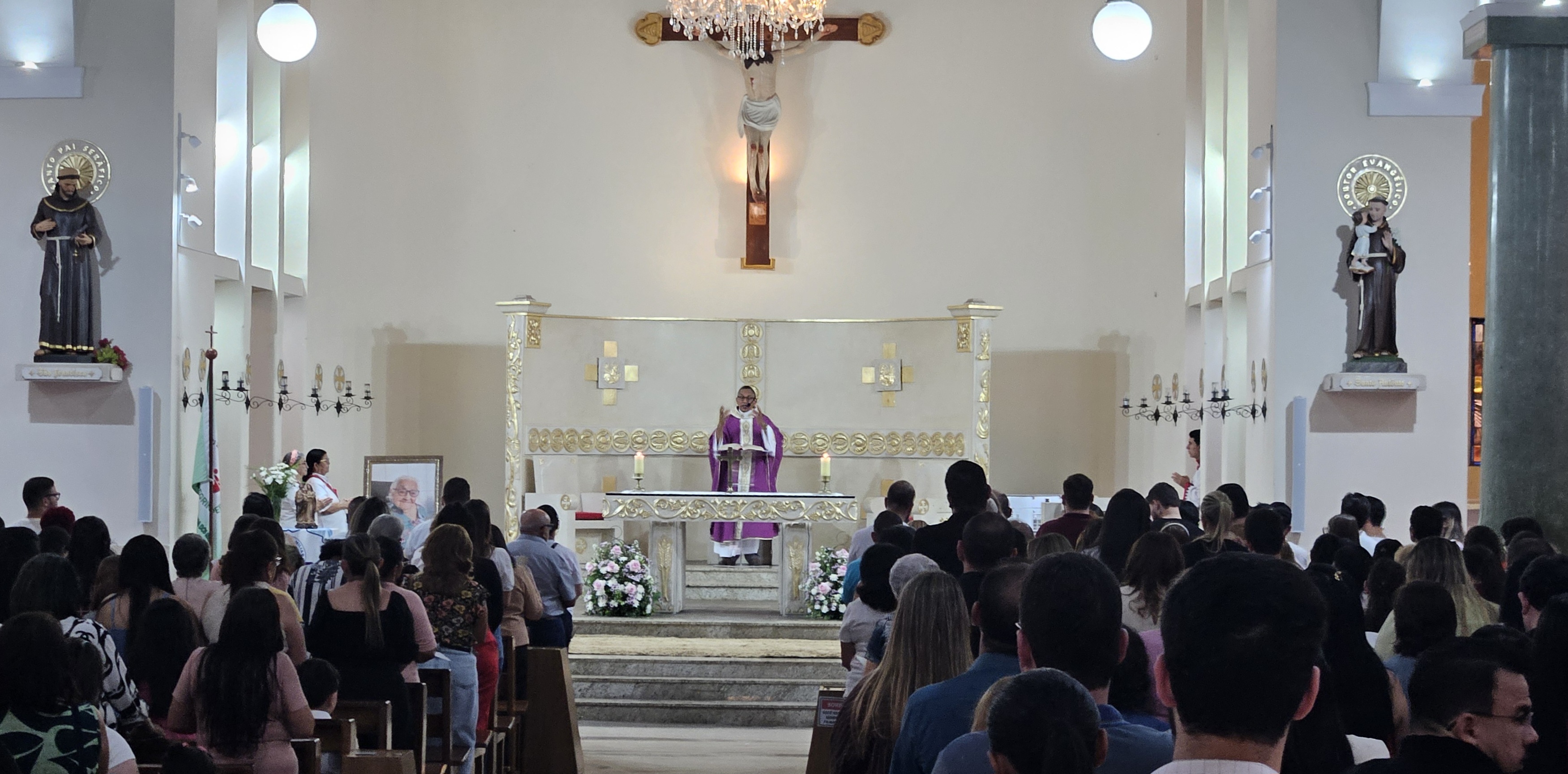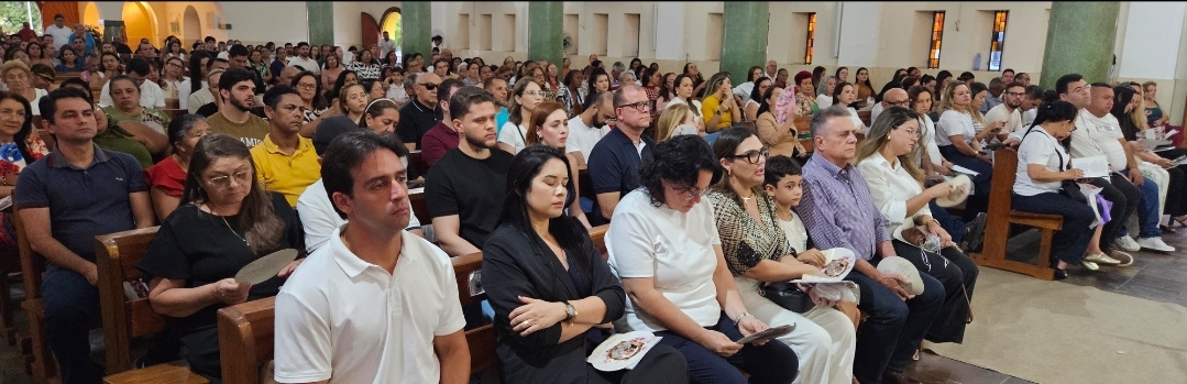 A celebração religiosa ocorreu na Paróquia Nossa Senhora dos Remédios e reuniu um grande número de fiéis.